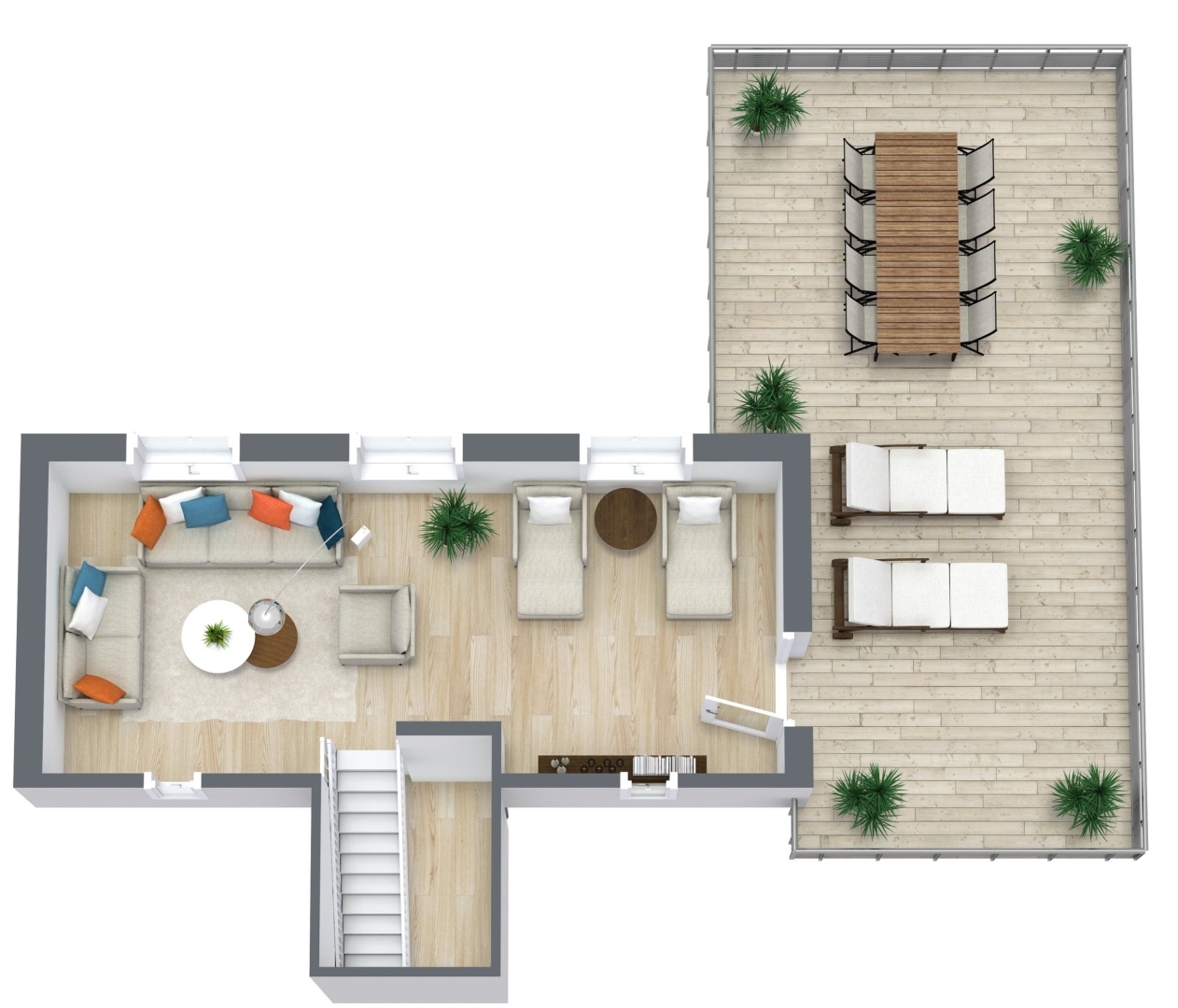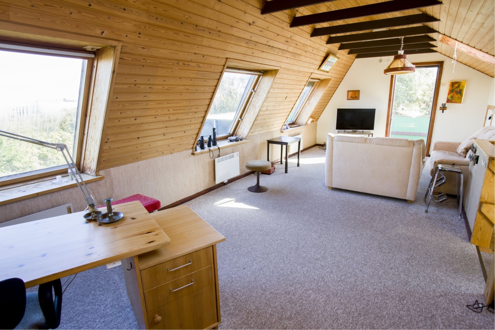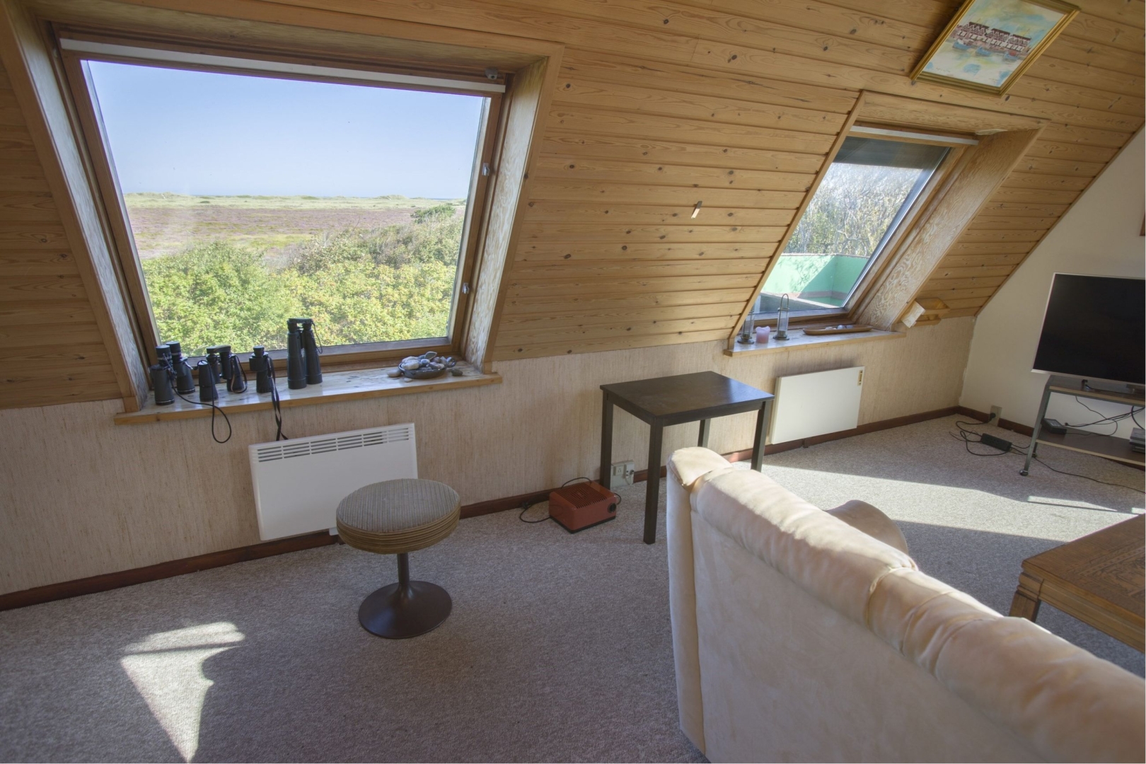 1. sal indeholder: En fantastisk udsigtsstue på hele 1. salens ca. 36 m² med store vinduer ud mod fredet natur og klitter i horisonten, der er endvidere udgang til stor tagterrasse med lækker udsigt.