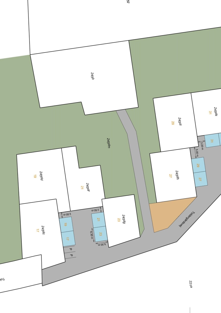Der kan opføres et hus på grunden på 150 m² i 2 plan med ensidig taghældning.