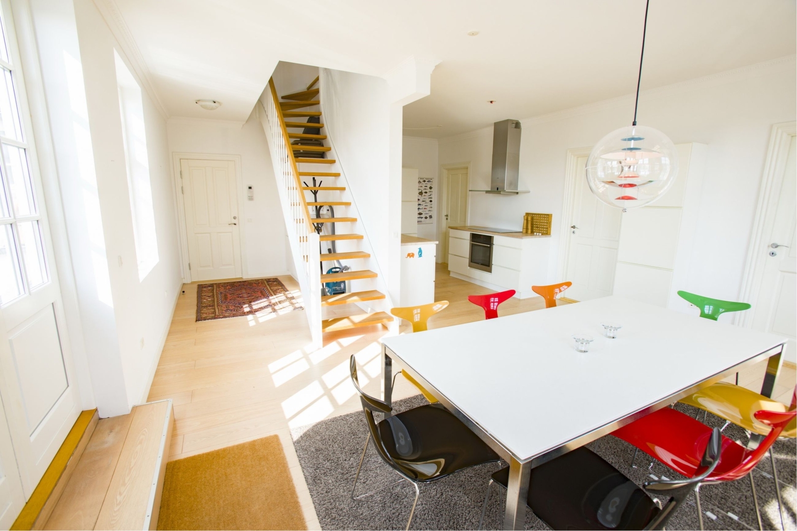 Denne penthouselejlighed kombinerer luksuriøse faciliteter og klassisk skagencharme i en harmonisk helhed. Her får du både byliv og kultur lige uden for døren og en bolig, der indbyder til afslapning og livsnydelse.