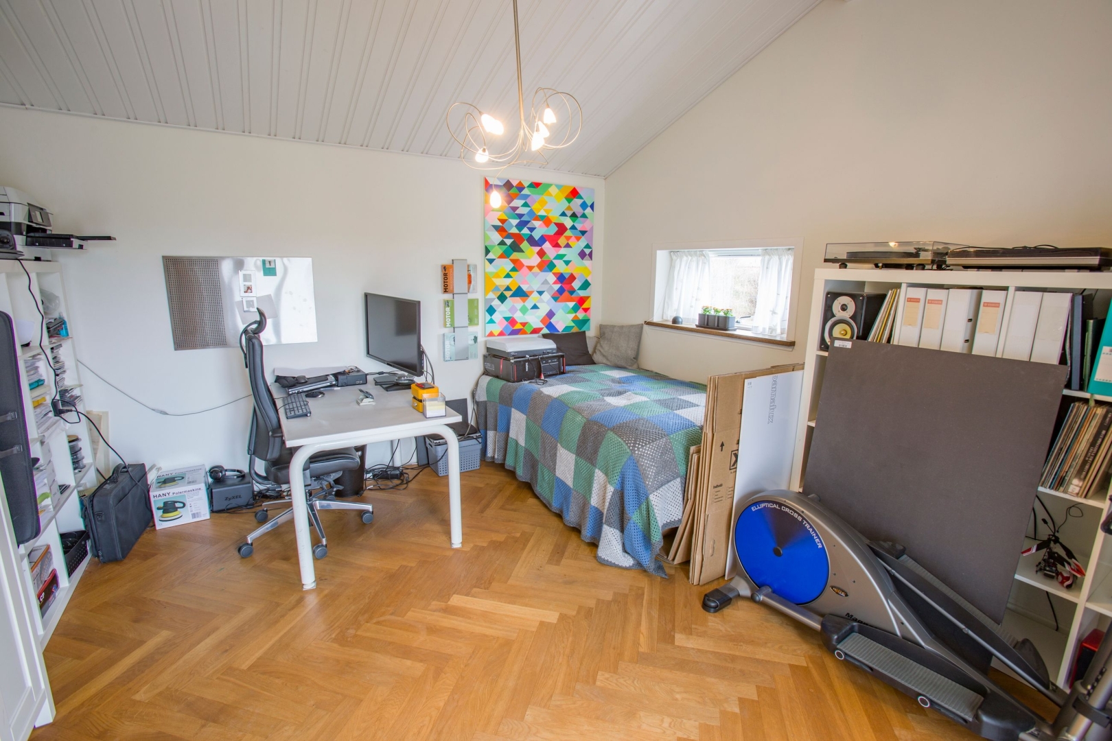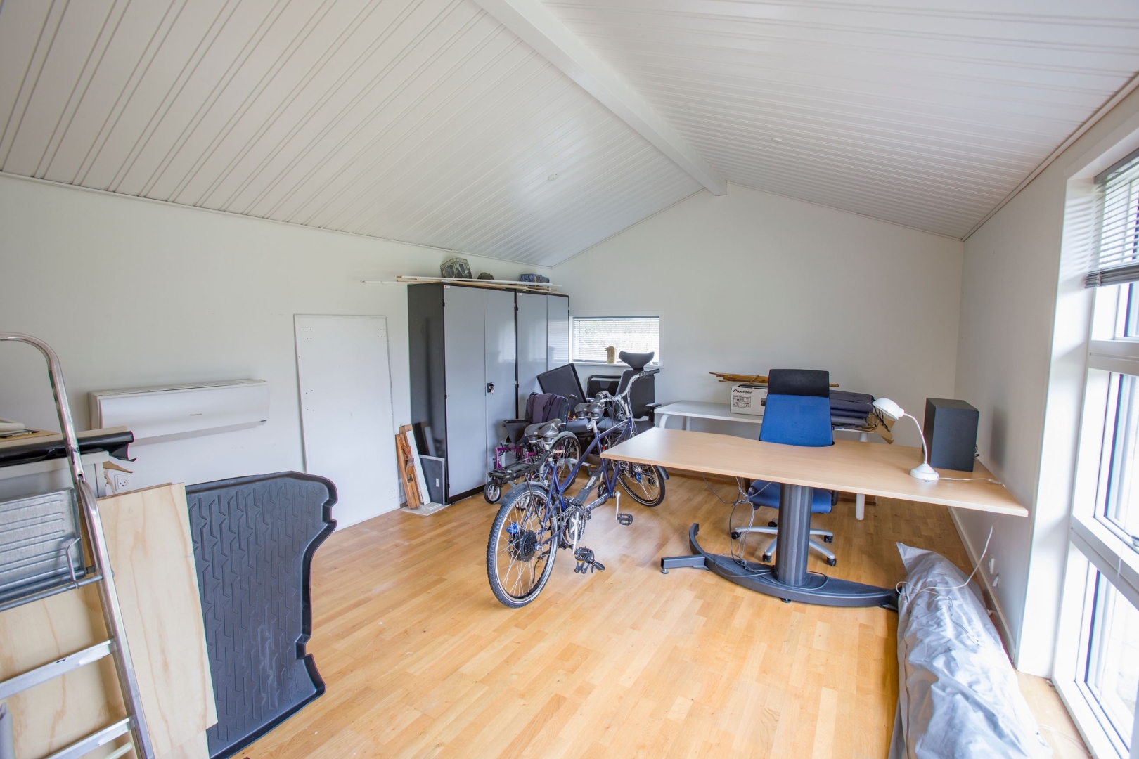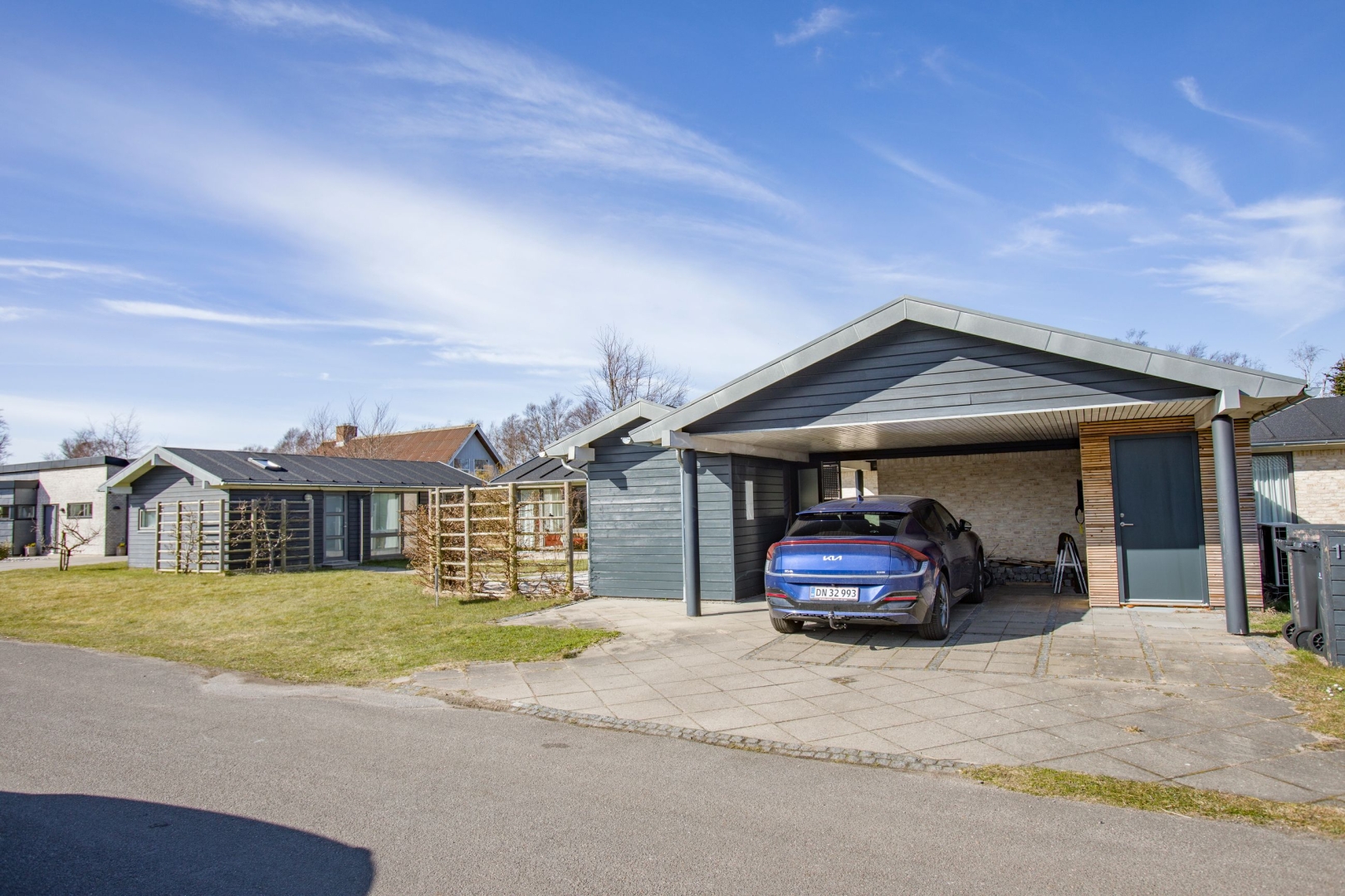 Anneks på 45 m² har været brugt som tegnestue, tilbyder fleksible anvendelsesmuligheder, perfekt som gæstehus, hjemmekontor eller hobbyrum. Anneksets moderne indretning og komfortable varmeinstallationer sikrer et behageligt indeklima hele året rundt. Der er desuden en 46 m² carport med opbevaringsplads og overdækket gang til villaens indgang.
