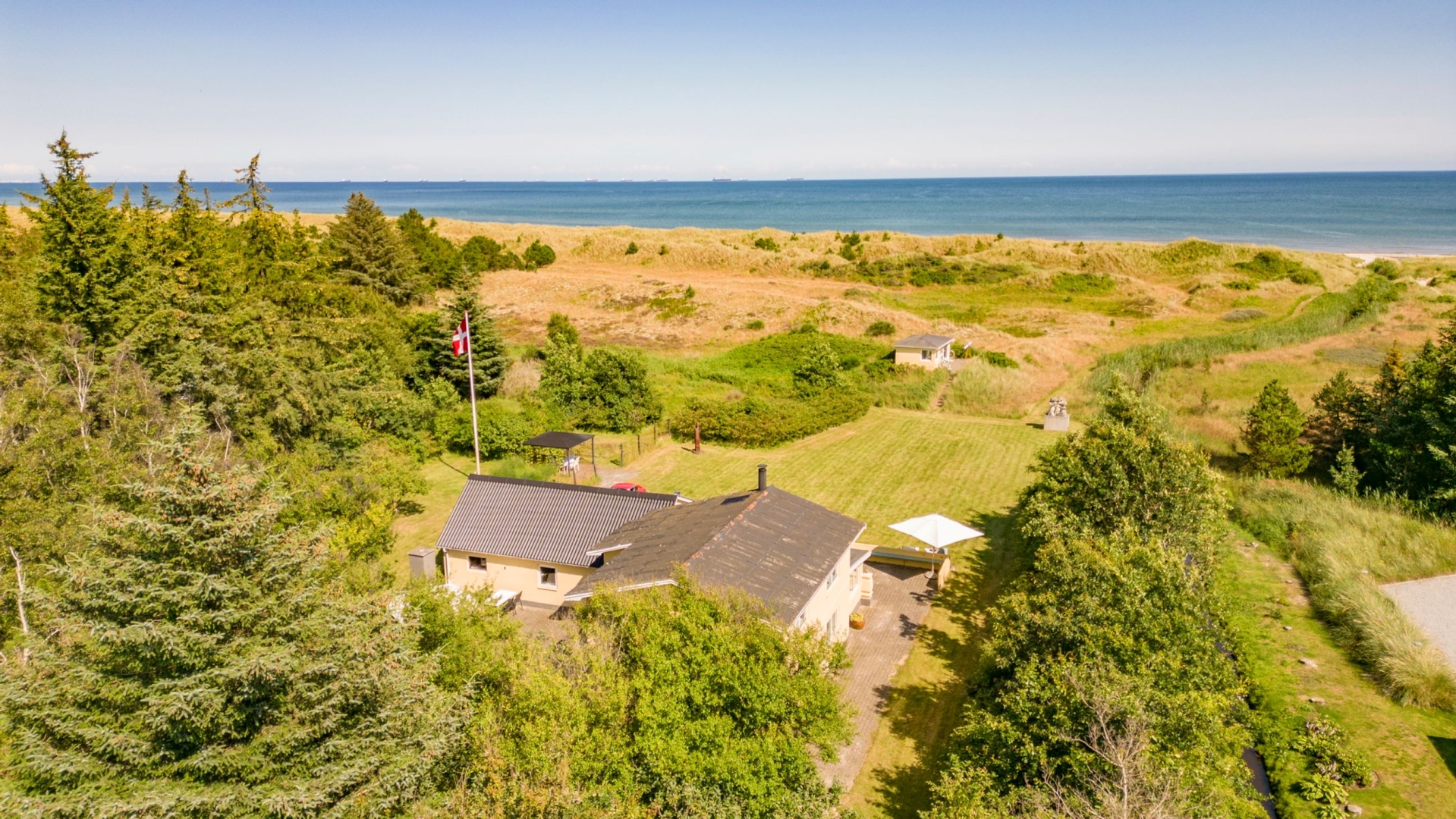 Her er muligheden for at erhverve et sandt fristed, hvor hele familien kan være.Forestil dig et sommerhus med privat adgang til fantastisk og børnevenlig sandstrand beliggende få hundrede meter fra huset, og omkranset af ubeskrivelig skøn og vild natur, egen skov og stor dejlig græsplæne ned mod klitterne og stranden, og ikke mindst godt gemt væk helt ugenert fra naboerne på privat vej. Huset ligger 20 min kørsel syd for Skagen og 5 min kørsel til indkøbsmuligheder i Ålbæk.Velkommen til denne enestående fritidsbolig på Alkevej 18, en sand perle med charme, komfort og naturskøn beliggenhed.Huset med navnet Søbæk er bygget i 1946 og er løbende moderniseret med respekt for husets oprindelige ånd. I slutningen af 1990erne blev der udført en gennemgribende renovering af huset. Det har været i samme families eje gennem alle årene, men er nu klar til at blive rammen om nye familiehistorier.Hjemmets hjerte er uden tvivl den kombinerede køkken- og spisestue, hvor synlige bjælker og klinkegulv danner rammen om familiens samlinger. Det funktionelle Svane Køkken med gaskomfur er fra 2008. Fra spisepladsen er der udsigt over klitterne gennem dobbelt franske glasdøre. Disse fører ud til den charmerende udestue med brændeovn, der kan nydes selv på kolde vinteraftener. Herfra er der udgang til haven og havet tæt på. I den anden ende af køkken- og spisestuen, findes 2 værelser, som i dag fungerer som kontor og gæsteværelse. I entreen findes trappen til første sal.I stueplan findes der også et stort bryggers med grovkøkken, vaskefaciliteter, vinkælder og nyere varmepumpe med fjernstyring. Herfra er der adgang til det store badeværelse med både karbad og bruseniche samt behagelig gulvvarme under de klassiske klinker. Fra bryggerset er der også direkte adgang til stort værksted med adgang til mindre toilet med bruseniche, samt stort loftsrum med synlige bjælker og højt til loftet, som eventuelt kan renoveres og udnyttes til et dejligt hobbyrum. Fra værkstedet er der også en udgang til den store græsplæne, og ved siden af værkstedet findes stor lækker garage med støbt gulv og aflåselig port.På første sal finder I 4 rummelige værelser med indbyggede skabe og betagende udsigter over haven, klitterne og vandet - det perfekte sted at vågne op til solopgangen. Et ekstra toilet øger hjemmets funktionalitet for familie og gæster.Udenfor åbenbarer ejendommen sig som et sandt paradis. Den vilde have omkring huset inkluderer stor flot græsplæne og terrassearealer mod sydøst, alt sammen omkranset af den imponerende naturgrund fra bakken ned til strandlavningen. Mod vest findes et skønt gårdhavemiljø med muret pejs til grill-aftener og bålhygge, i læ fra vind og omkranset af skoven, hvorfra aftensolen kan nydes.
