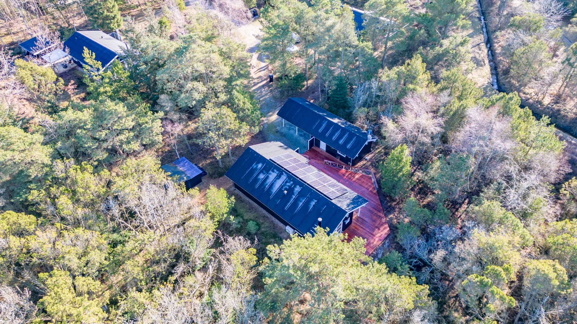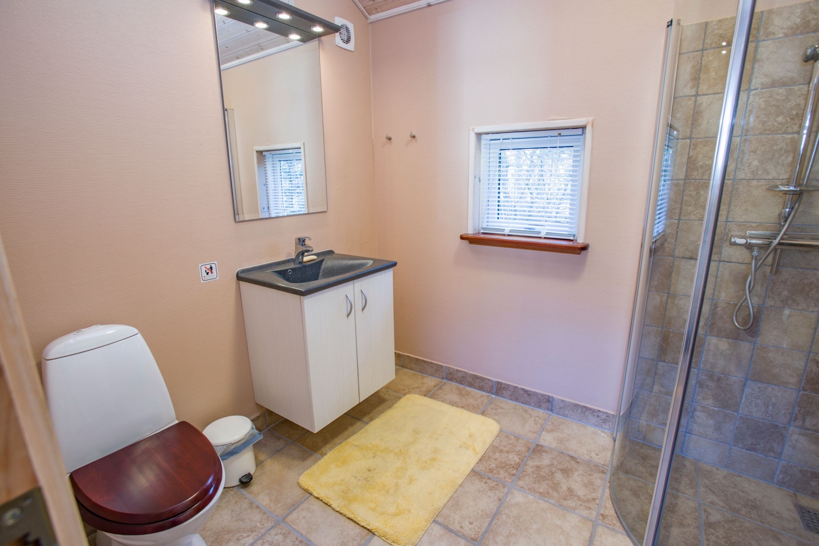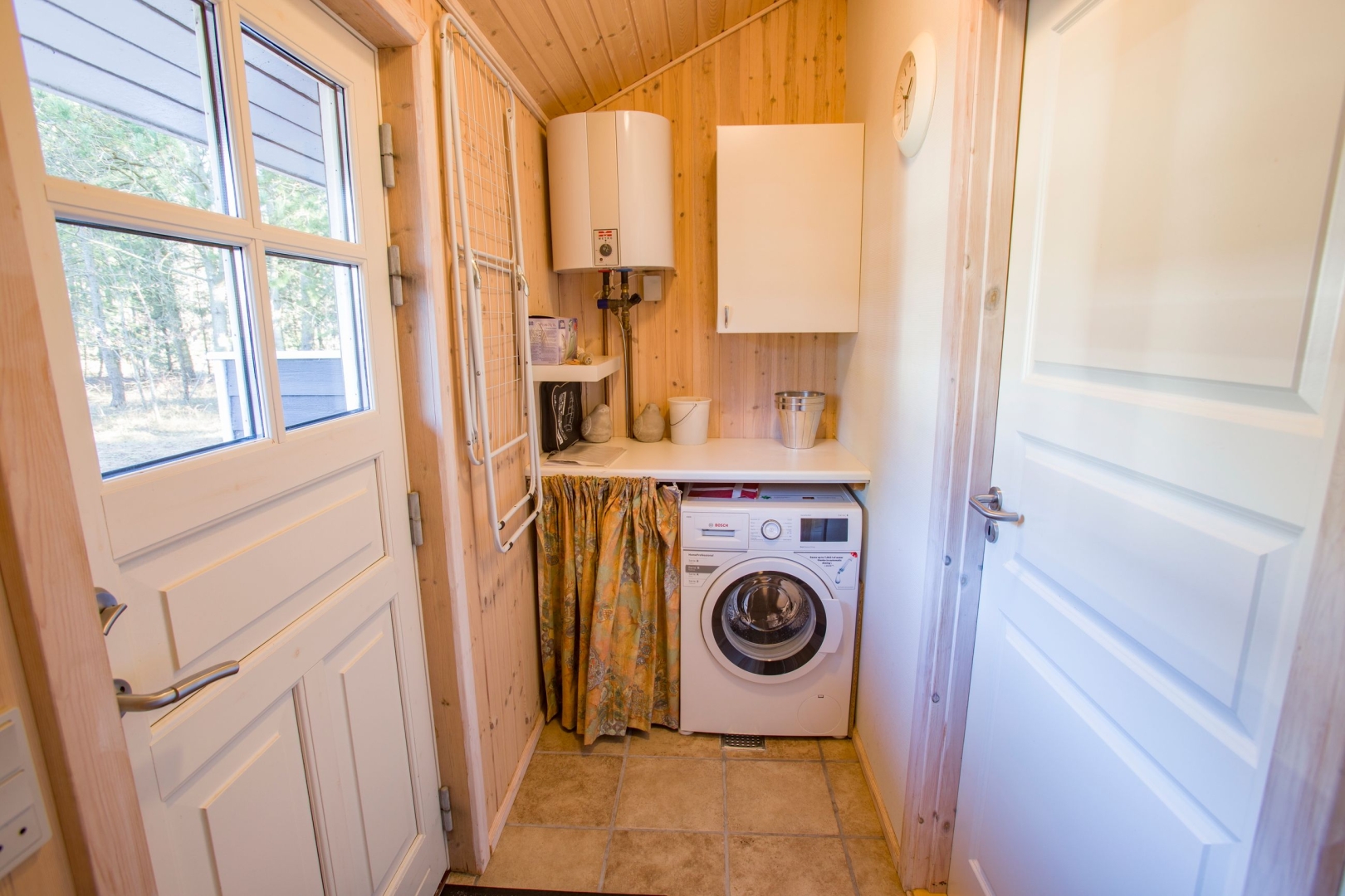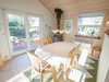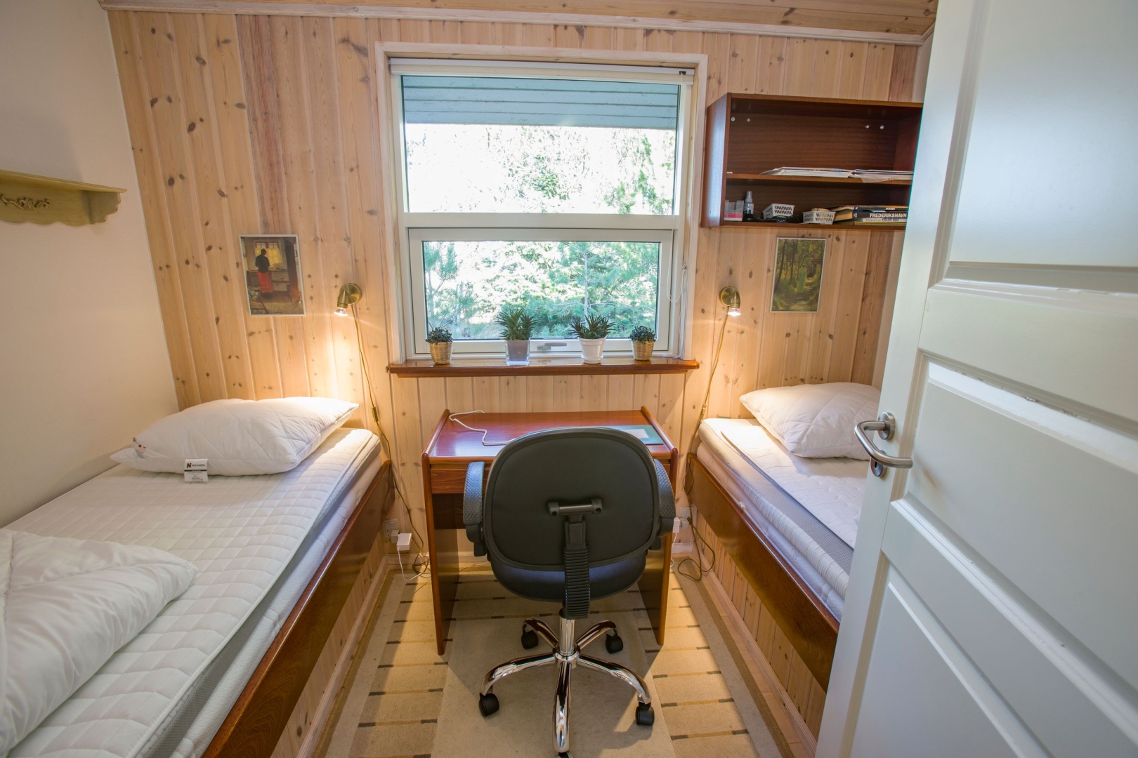 Indenfor får du en funktionel og lys indretning, der består af: En indbydende entré med klinkegulv - Et hyggeligt værelse med to senge - Et rummeligt soveværelse med elevationsseng, skabe og loft til kip - Et moderne badeværelse med bruseniche, el-gulvvarme og hjørnespa perfekt til afslapning efter en lang dag - En dejlig stue og spiseplads i ét, med en varmepumpe og brændeovn, samt udgang til terrassen, der giver direkte adgang til den smukke natur - Et funktionelt køkken med alt hvad du behøver for at lave lækre måltider.