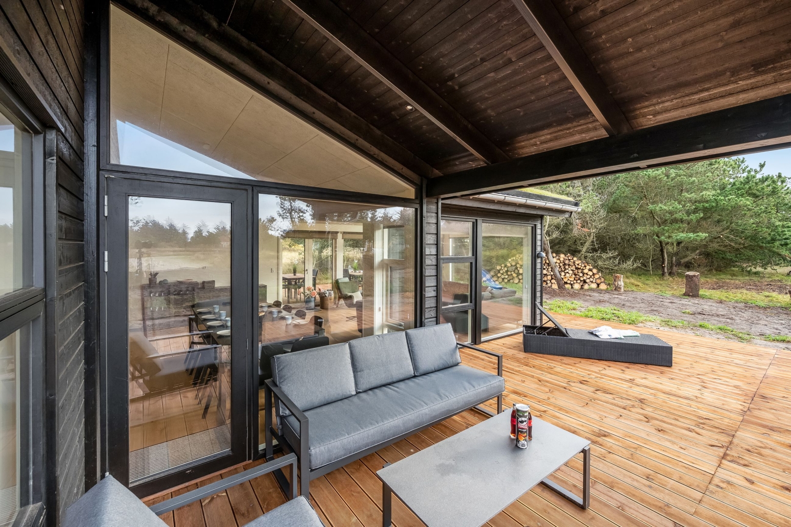 Rundt om sommerhuset er der en smuk træterrasse, hvor du kan finde lækroge og nyde skønne afslapningstimer i ro og fred. Terrassen giver også mulighed for hyggelige stunder med familie og venner i naturskønne omgivelser.
