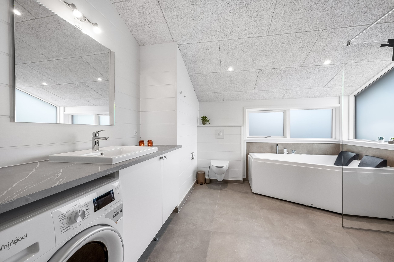 Sommerhuset på 111 m² byder på en perfekt kombination af funktionalitet og stil. Når du træder ind, mødes du af en lys entré med flotte klinkegulve, som leder dig videre til en praktisk gang med opgang til hemsen. Det luksuriøse badeværelse er et sandt wellness-område med en spa til to personer, en bruseniche, sauna og el-gulvvarme. Der er også plads til vaske / tørremaskine, hvilket gør hverdagen lettere.