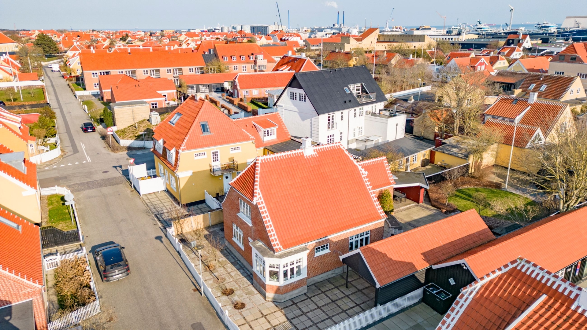 Denne villa, opført i 1930, fremstår i klassiske røde mursten med hvide vinduer og et rødt tegltag. Grunden på 633 m² byder på parkering, flere praktiske udhuse og en dejlig, ugeneret have vendt mod syd, hvor du kan nyde solen hele dagen. Der er flere terrasser, så du kan vælge det perfekte sted til både morgen-, middag- og aftensol. Som en ekstra bonus er der et omvendt båd-hus, hvor hyggen aldrig vil få ende.