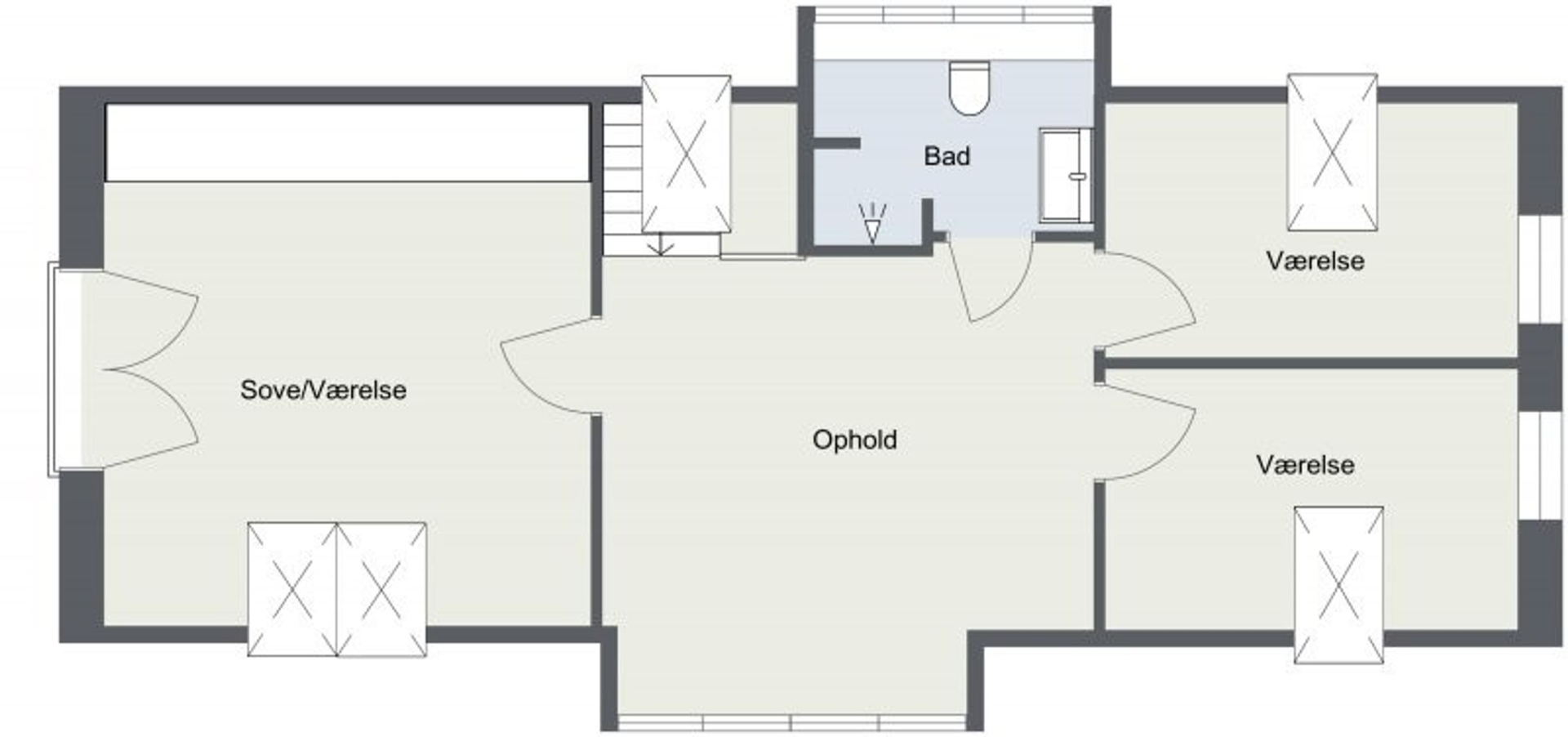 På førstesalen mødes du af en hyggelig opholdsstue med sydvendt kvist og smukt udsyn til Vippefyret og et bid af Sønderstrand og Kattegat kan opleves. Herfra fordeler rummene sig til to charmerende værelser i gavlen mod øst og et stort soveværelse mod vest, hvorfra der er flot kig over Østerby og hen mod det gamle vandtårn. Et ekstra badeværelse med bruseniche og kvist mod nord sikrer komfort på alle niveauer.