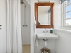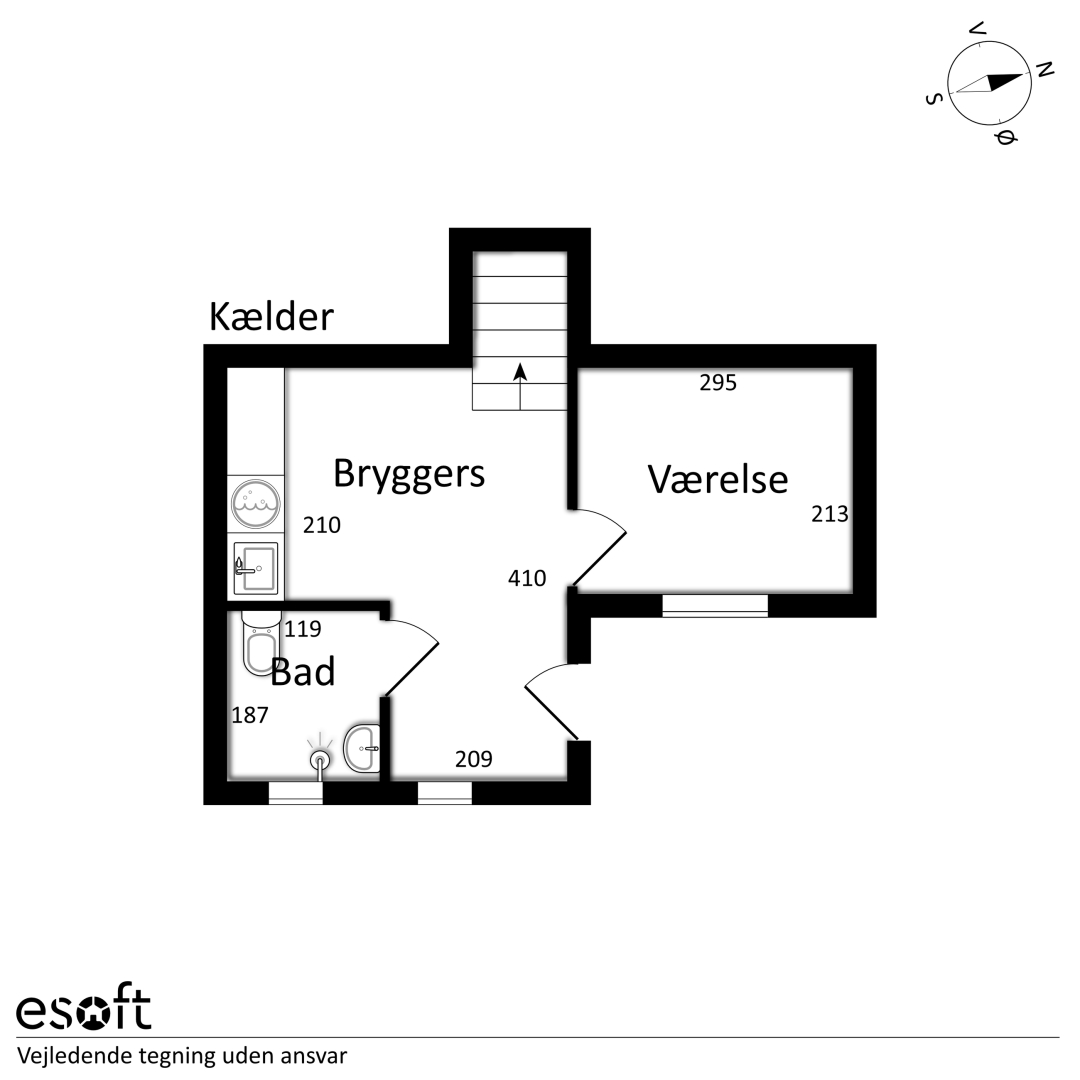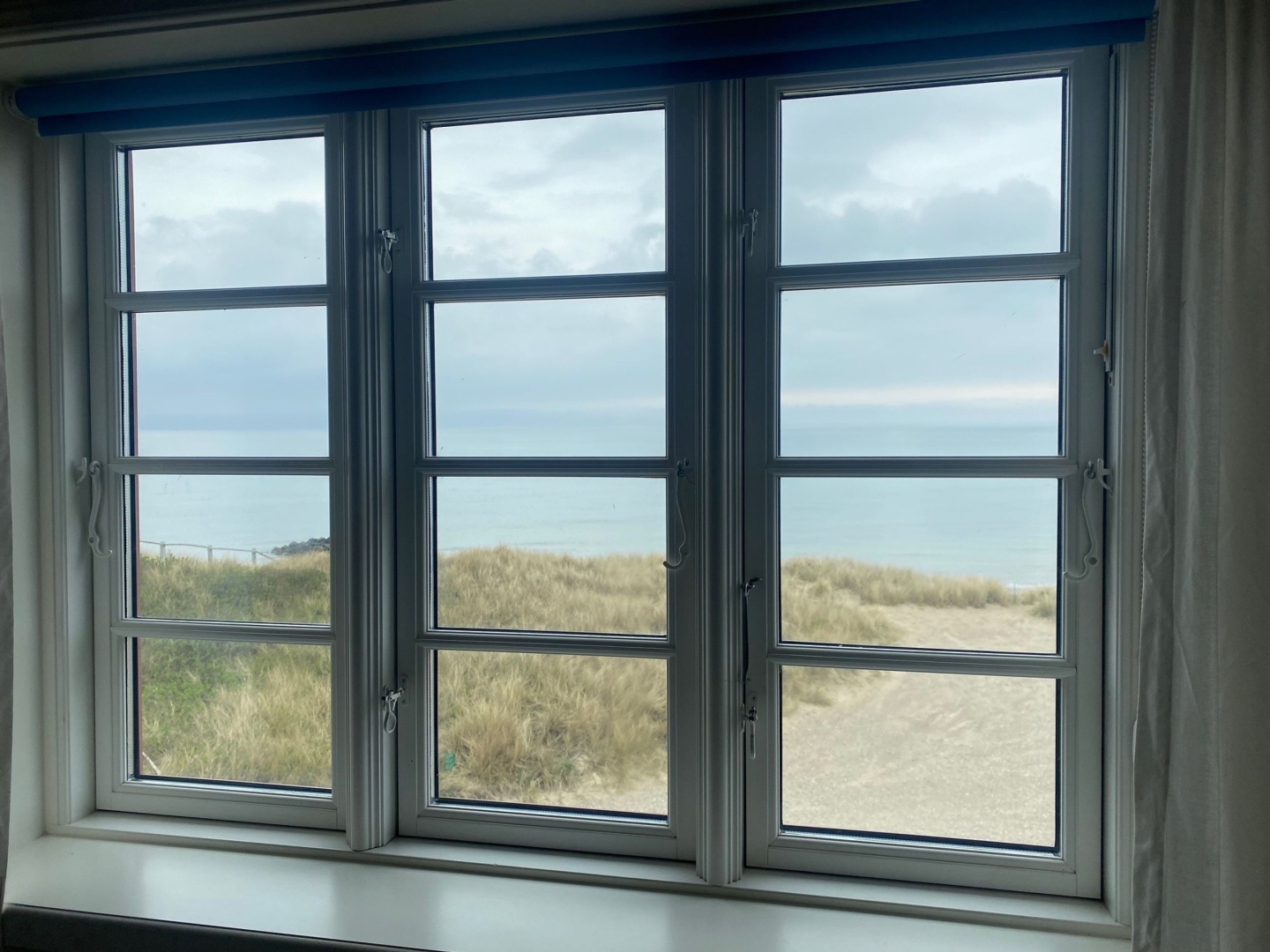 Kælderen er i lige så fin stand og byder både på et gæsteværelse, eget bad og toilet samt et praktisk bryggers med vaskemaskine og tørretumbler perfekt til strandlivets mange badehåndklæder. Selv hernede har man udsigt til havet.