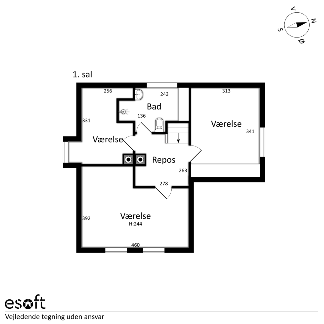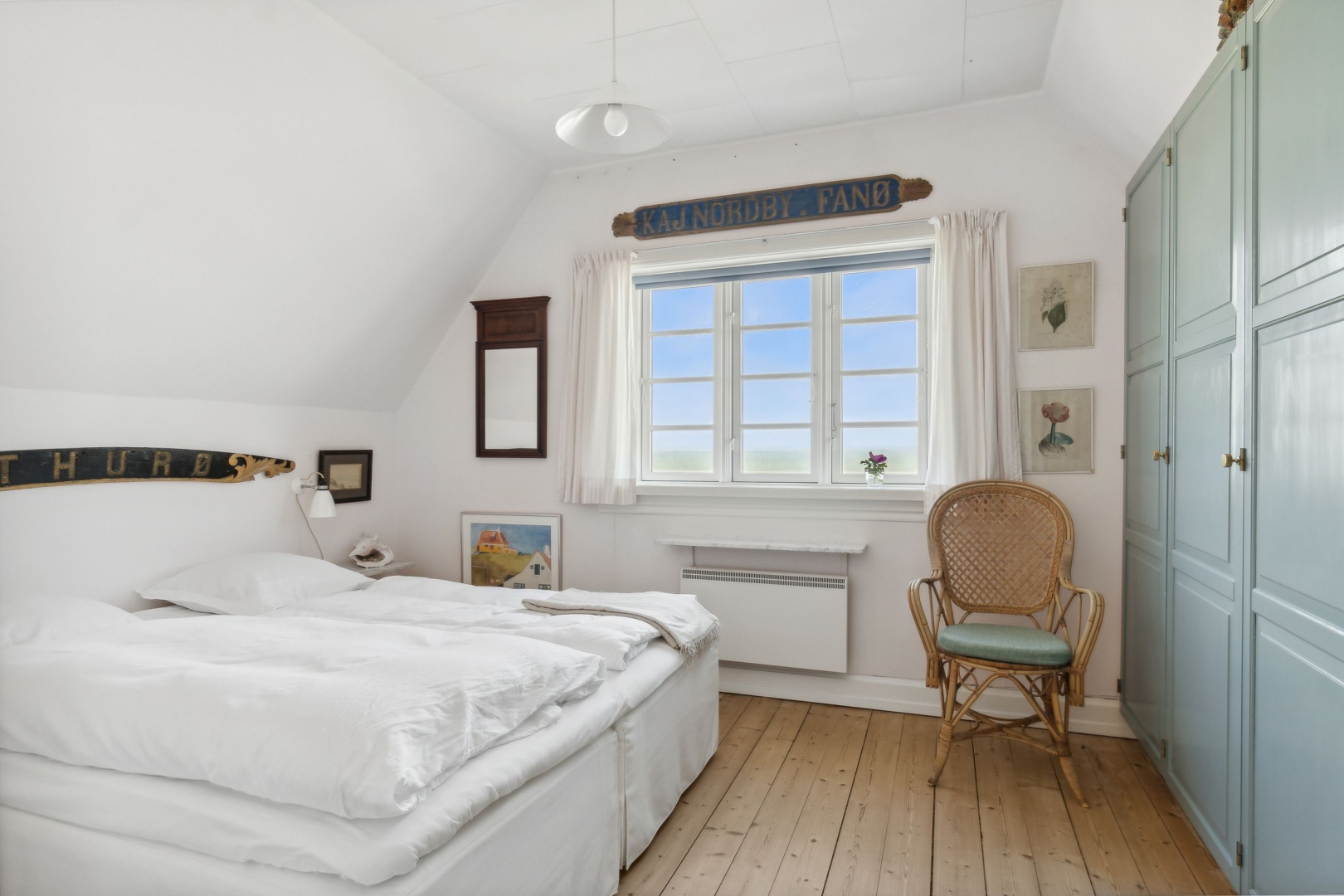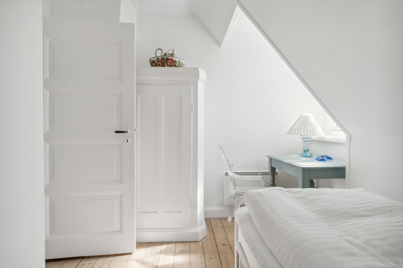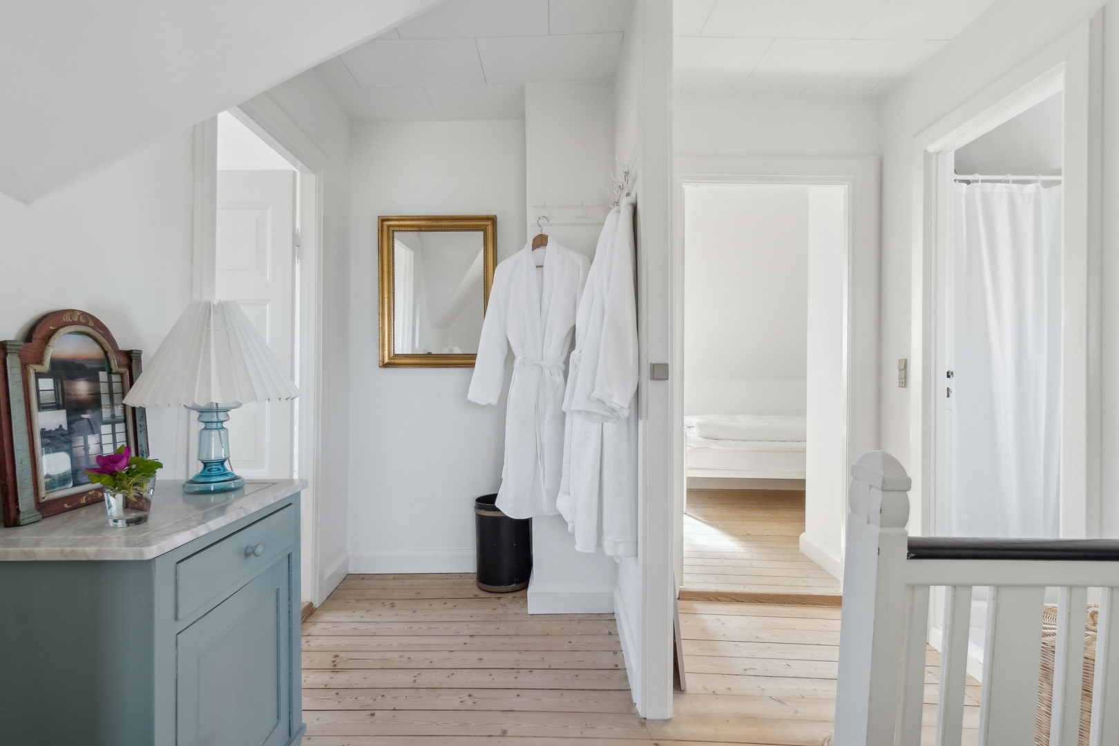 På førstesalen finder du tre lyse og hyggelige værelser samt et badeværelse med brus og armaturer fra danske TONI. De originale plankegulve og det særlige lys, der strømmer ind fra alle sider, minder én om, hvorfor Skagenlys har fået sit navn.