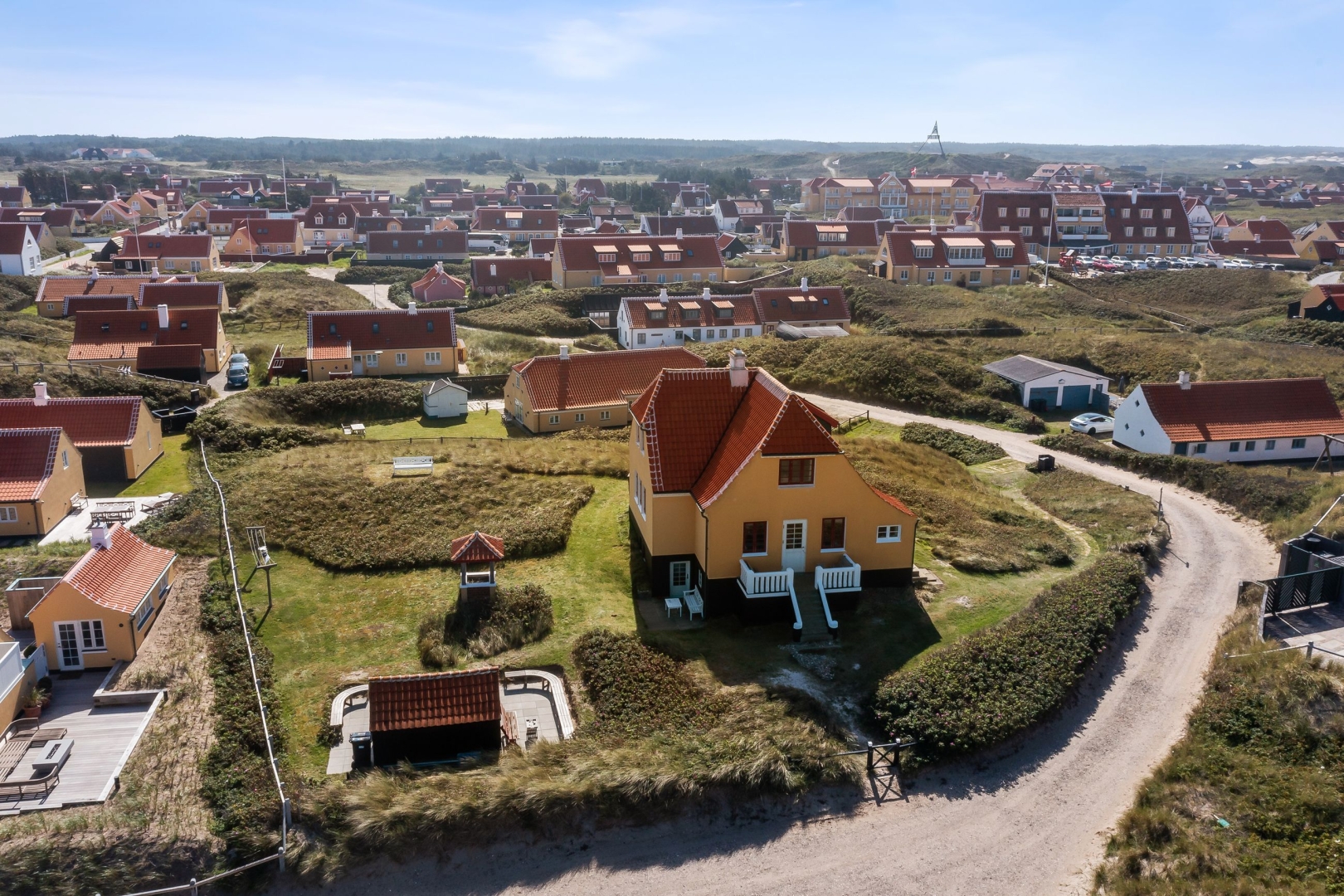 Grunden er kuperet og naturlig, præcis som en sommerhusgrund i Gl. Skagen bør være. Et lille skur med læterrasse og den gamle brønd, der stadig står, begge med røde tegl, skaber helhed og harmoni. Den store sydvendte naturterrasse er skærmet mod vestenvinden af en solid mur i forlængelse af huset. Omkranset af klitplanter og hybenroser får man her en autentisk oplevelse af naturen og af Gl. Skagen, når det er allerbedst.