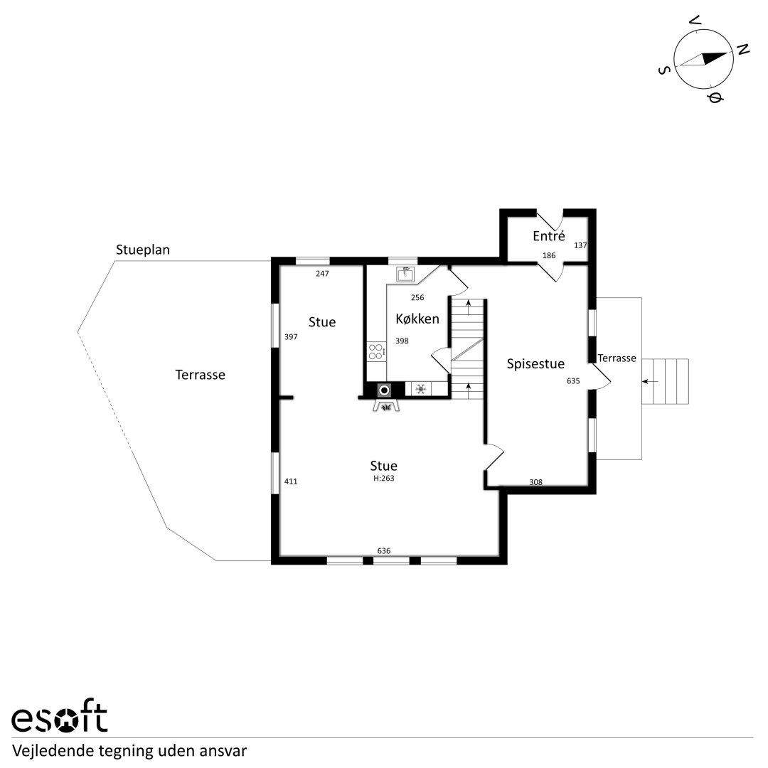 Gennem dobbeltdøre med påmalede fabler føres man ind i stuen, hvor det karakteristiske Skagenslys vælter ind ad vinduerne og skaber en særlig ro. Stuen er hyggeligt indrettet med små kroge og en stor, muret pejs, dekoreret med dansende bønder skabt af ejerens bedstefar. Bag pejsen gemmer sig en alkove med et lille rundt vindue, som rammer hav og klitter ind som et levende maleri.