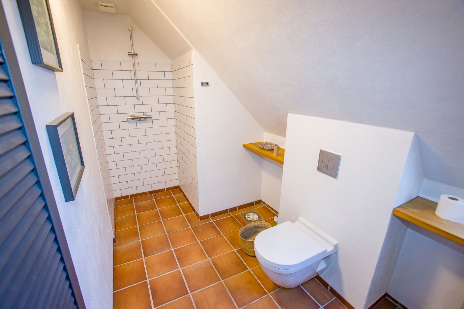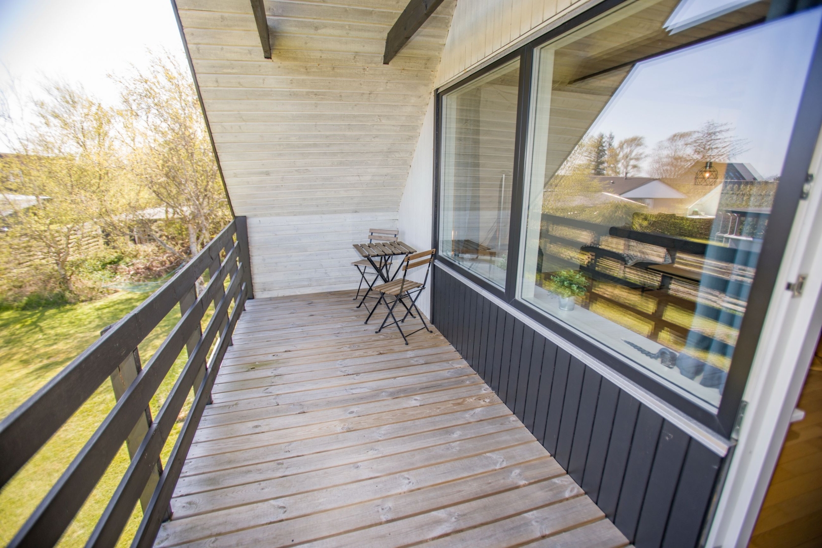 På førstesalen ligger et rummeligt soveværelse med skabe og fransk altan, endnu et badeværelse med bruseniche samt en stor og lys stue med flot udsigt til klitterne og kig til havet. Fra stuen er der udgang til en skøn svalegang, hvor du kan nyde både solopgangen og det åbne vue over området og klitlandskabet.