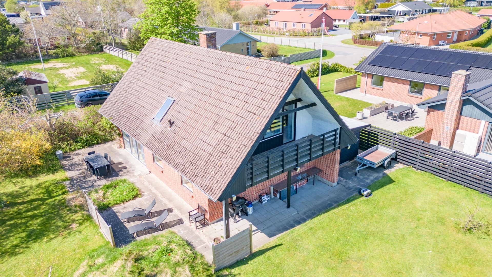 Grund og udhusGrunden er på 882 m² med god plads til leg, afslapning og udendørsliv. Desuden medfølger et praktisk værksted/udhus til opbevaring eller hobbyprojekter.