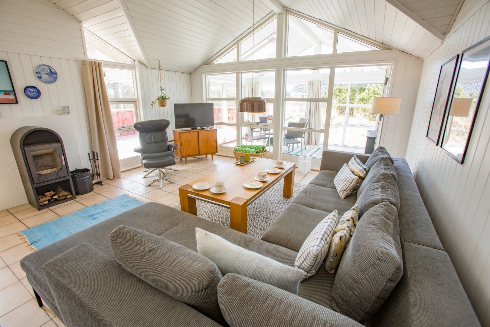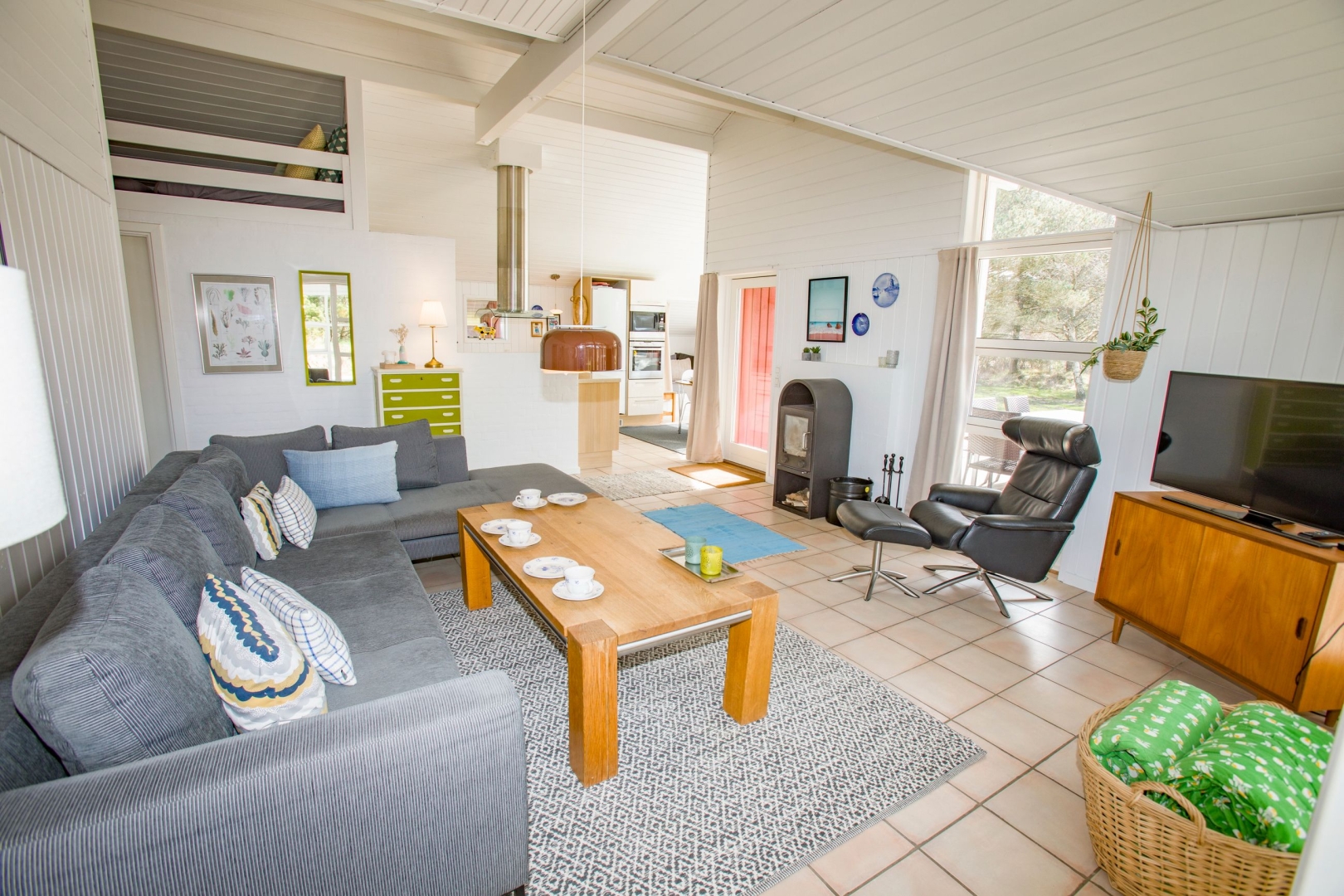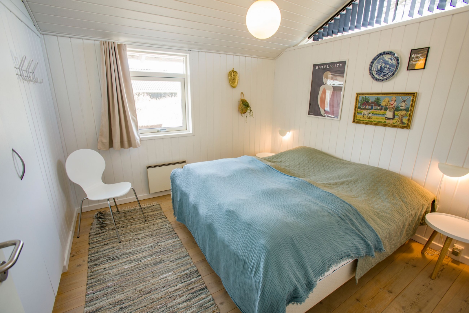 Indvendigt er der gennemgående ny malet hvide, lodrette træpaneler og hvide trælofter, hvilket skaber en harmonisk og indbydende stemning i hele huset.