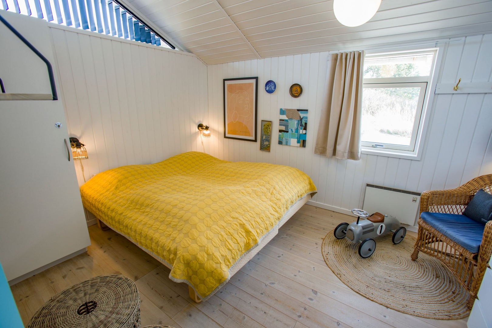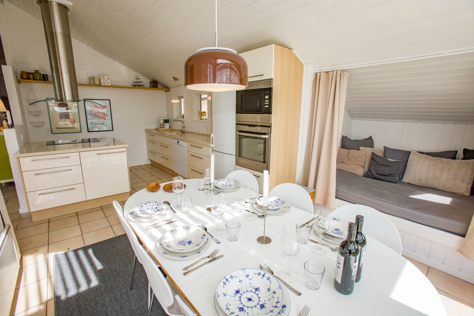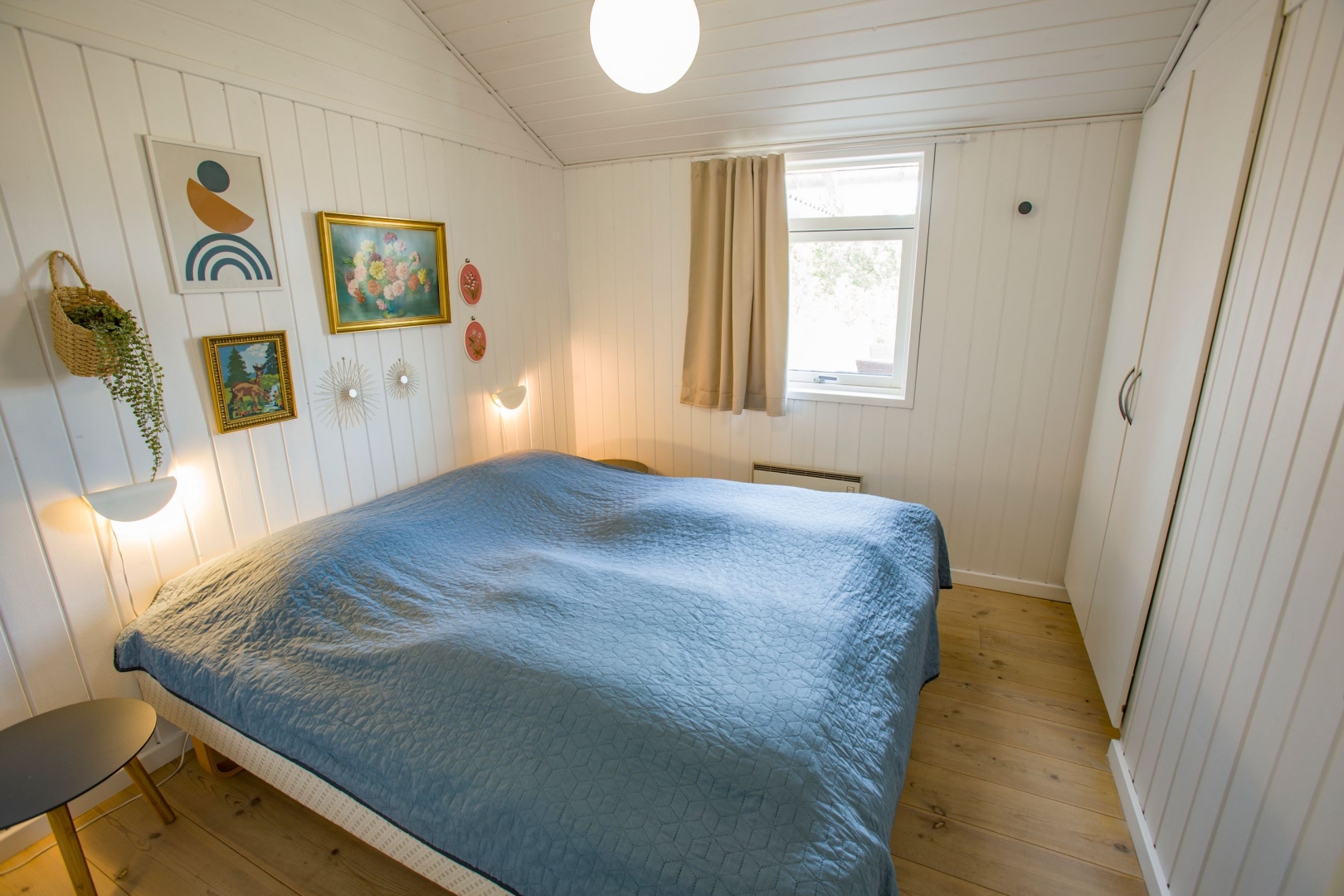 Indvendigt er der gennemgående ny malet hvide, lodrette træpaneler og hvide trælofter, hvilket skaber en harmonisk og indbydende stemning i hele huset.