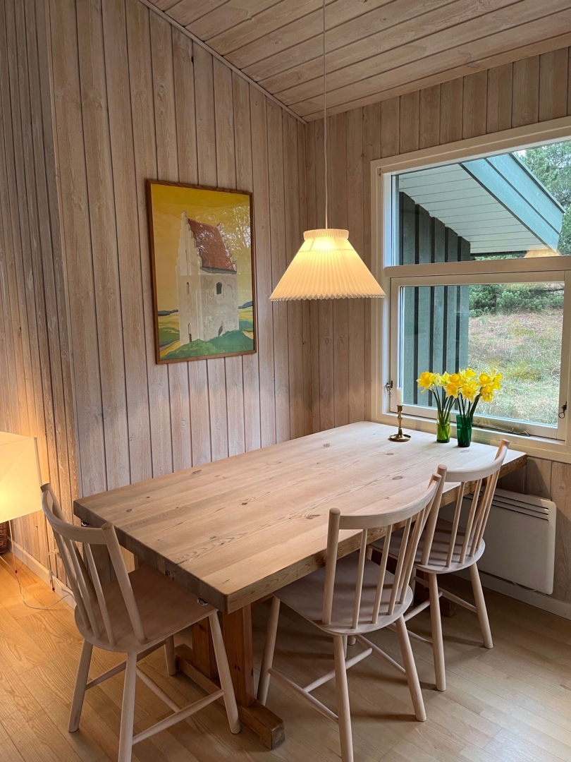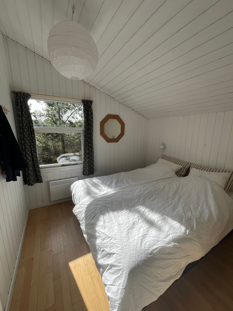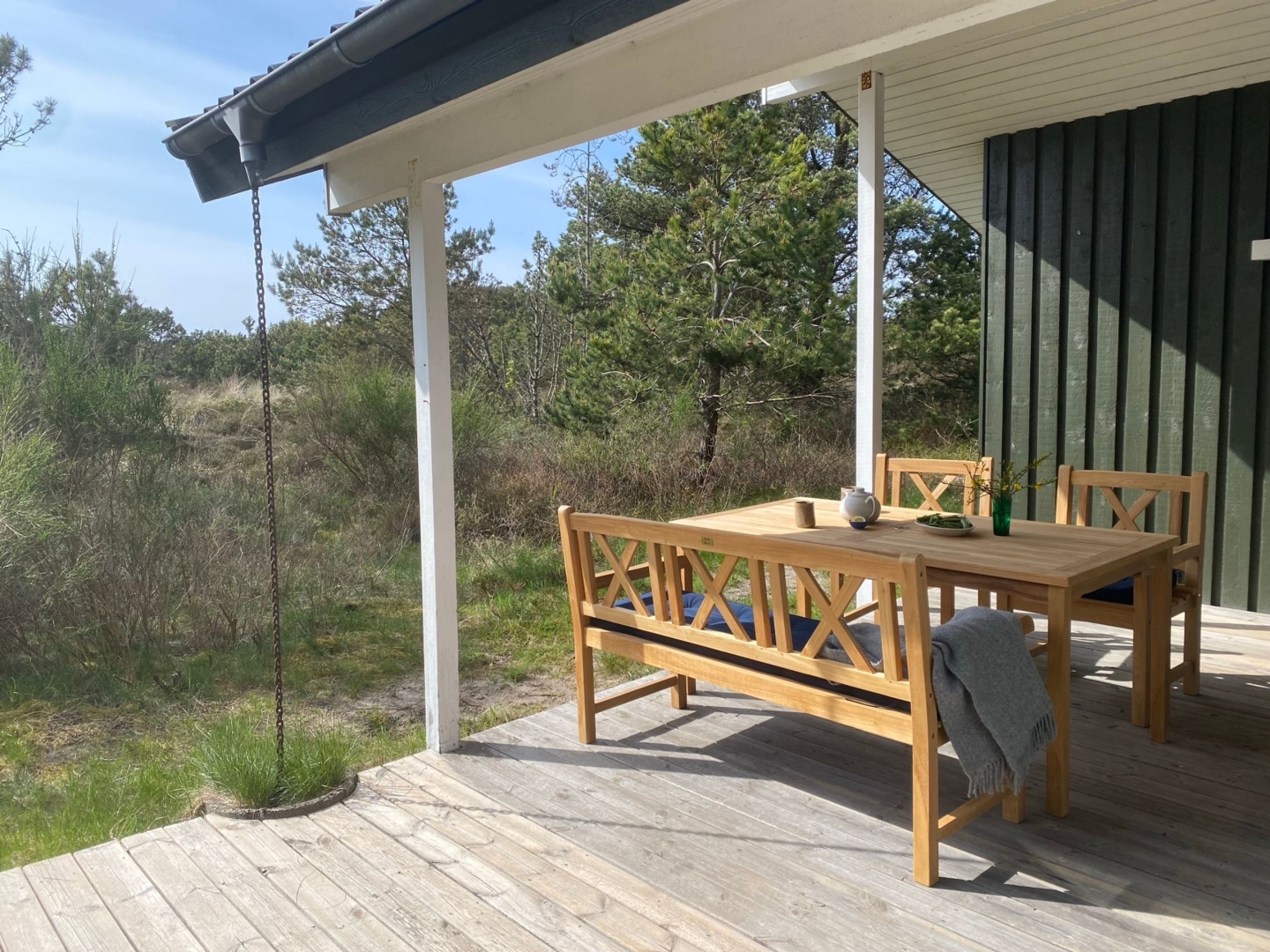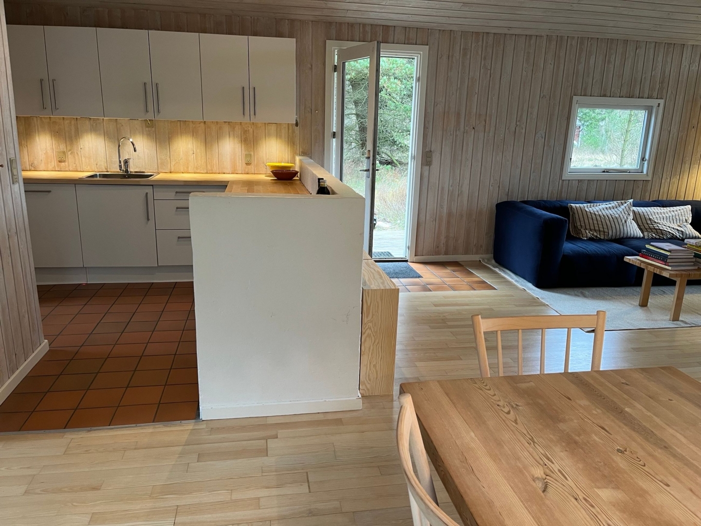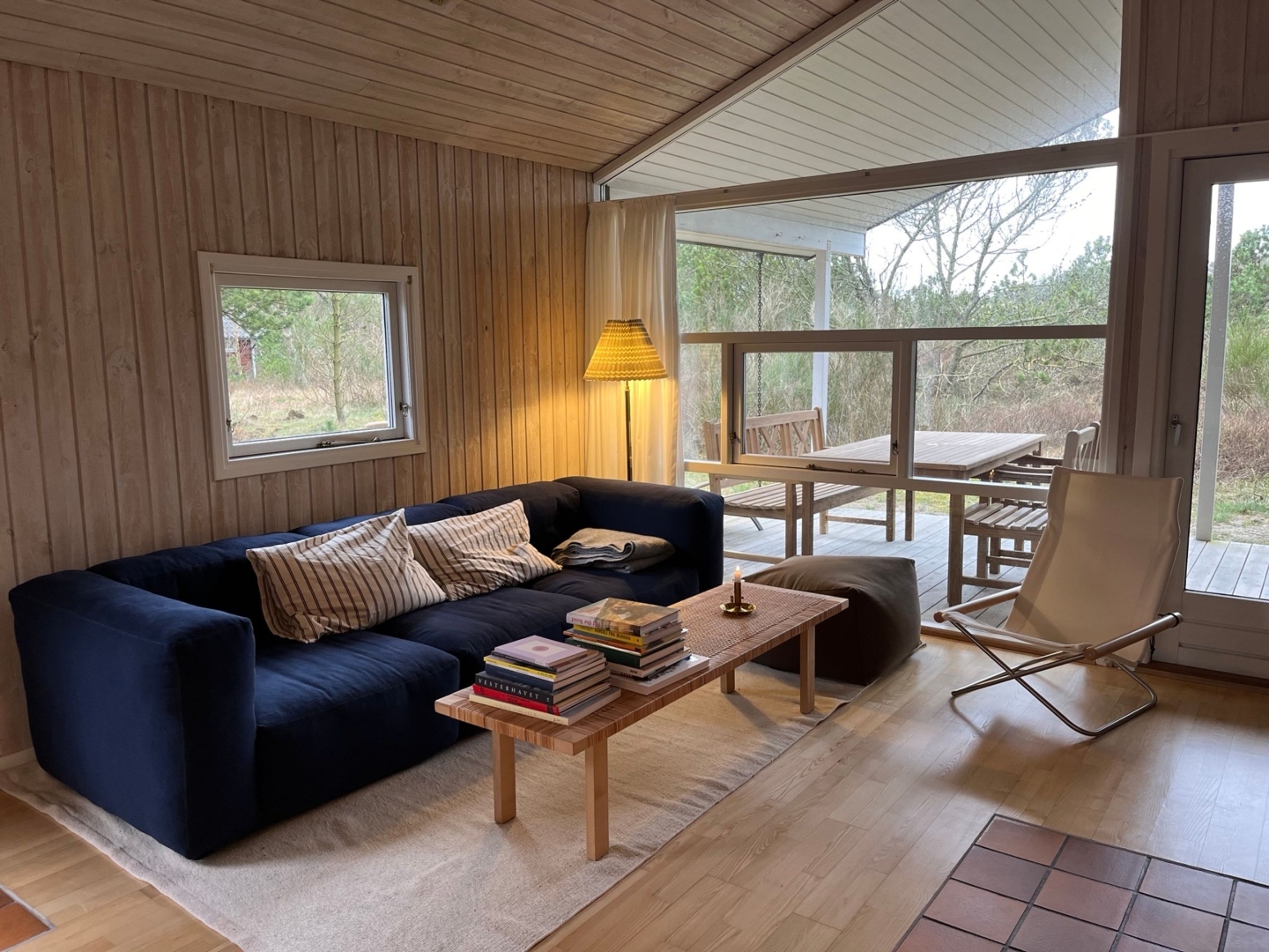 En oase af ro og komfort Sommerhuset ligger på en stor naturgrund på 1.236 m², som grænser op til den fredede klitnatur, og du kan nyde den uspolerede natur fra både husets terrasser og fra den overdækkede terrasse. Indenfor fremstår sommerhuset i en velholdt stand med et åbent og lyst køkken, der er forbundet med spisepladsen og stuen. De store vinduer i stuen giver et fantastisk lysindfald og en skøn udsigt til den omkringliggende natur. Her er også en hyggelig brændeovn, som skaber den perfekte stemning på kølige aftener.