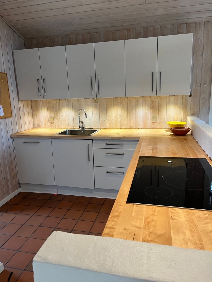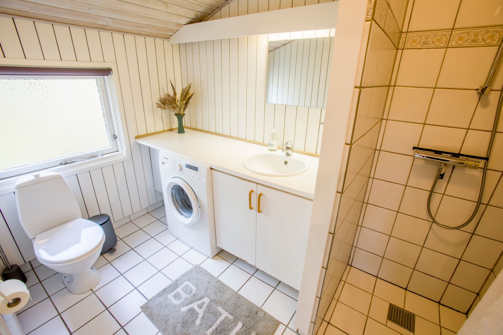 Praktisk indretning med plads til afslapning Sommerhuset har et boligareal på 75 m² og er indrettet med et køjeværelse med skab, et lyst køkken med halvmur til stuen og åben forbindelse til spisepladsen, et soveværelse med skabe, en spiseplads med varmepumpe og udgang til aftenterrasse, en stue med ny brændeovn og udgang til overdækket terrasse, en mellemgang med soveværelse, depotrum samt et lyst badeværelse med bruseniche, el-gulvvarme og vaskearrangement.