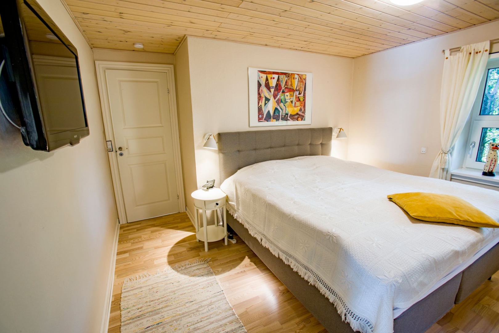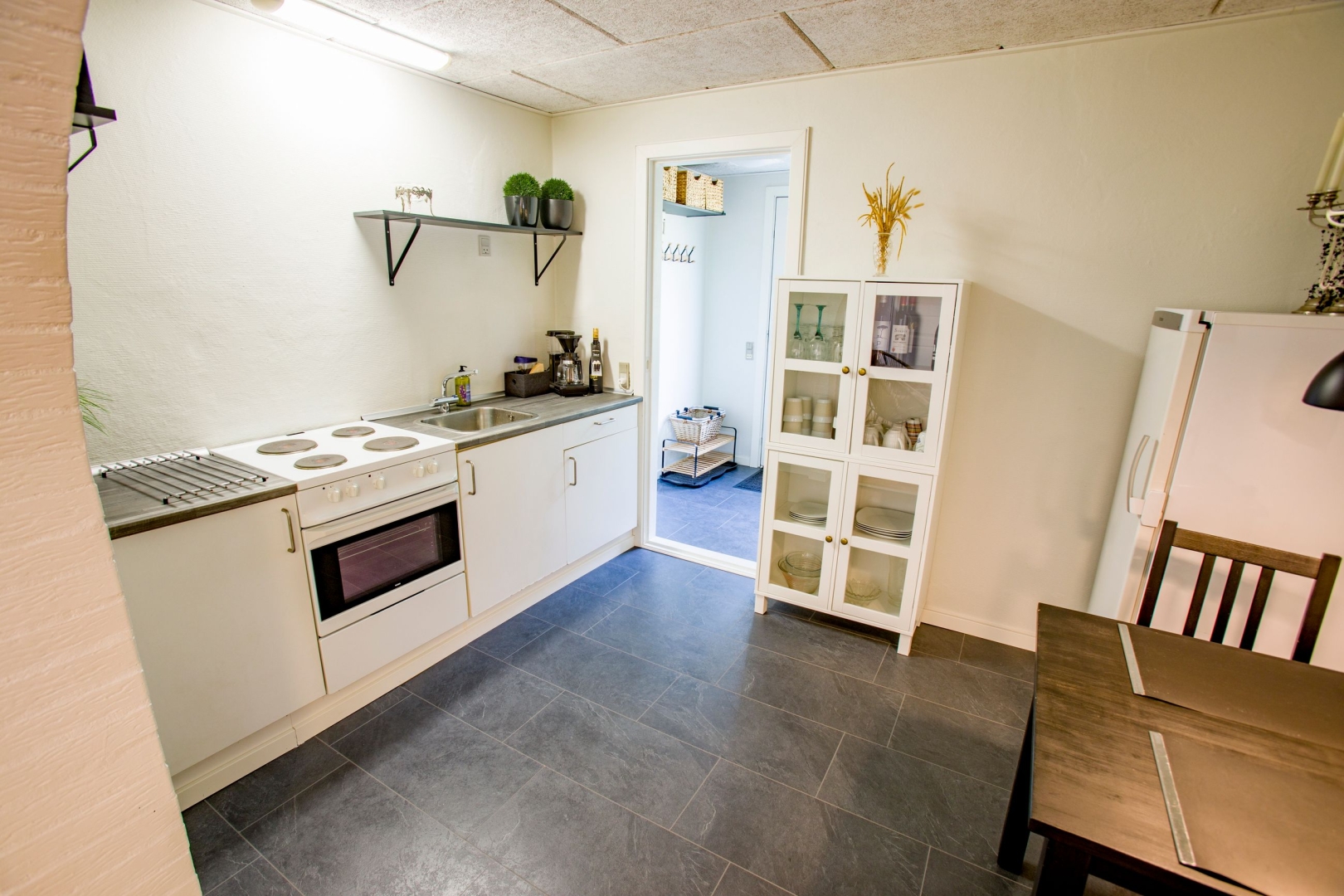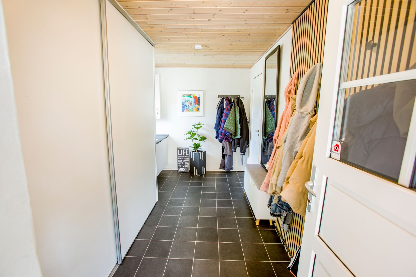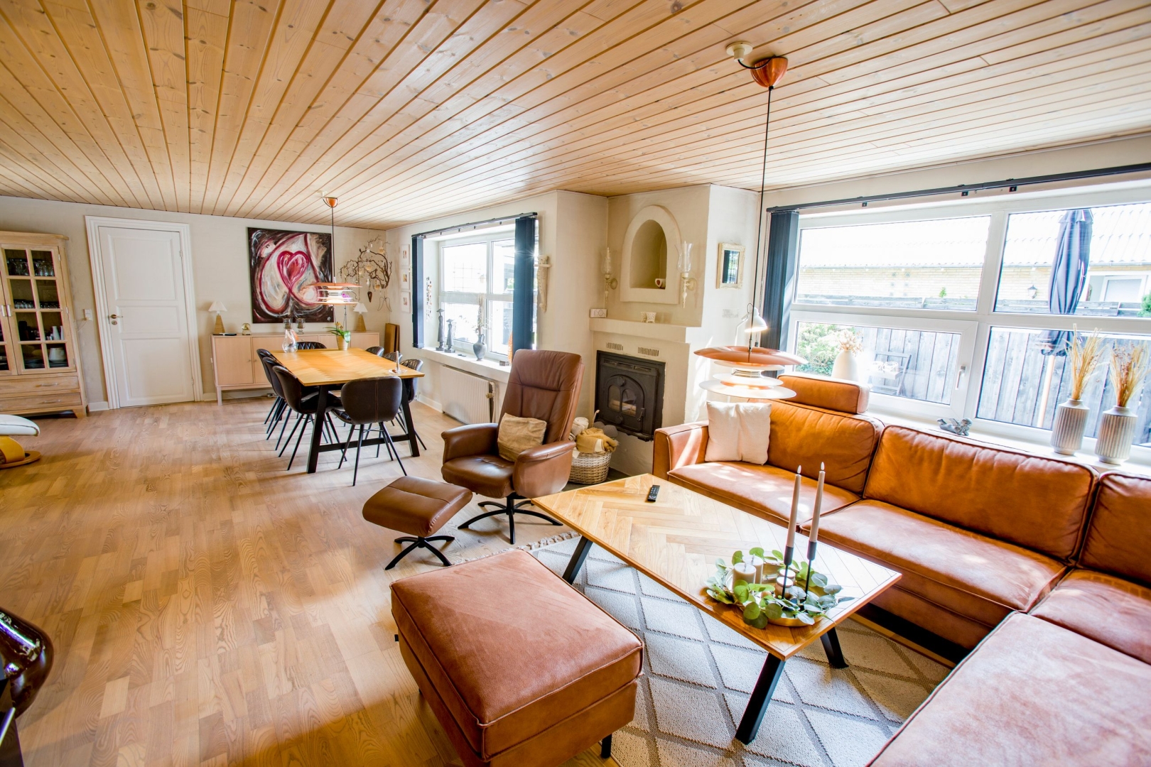 Huset fremstår hvidpudset med sortmalet eternittag og byder på hele 152 veludnyttede m², opført i solide materialer og med en lys og indbydende atmosfære. Her får du blandt andet et lækkert køkken-alrum med gulvvarme og direkte udgang til en overdækket terrasse, et praktisk bryggers med god opbevaringsplads og et viktualierum med inverter til solcellerne, som blev installeret i 2012. I den store stue er der både spiseplads, varmepumpe og en indmuret brændeovn, der skaber hygge og varme året rundt.
