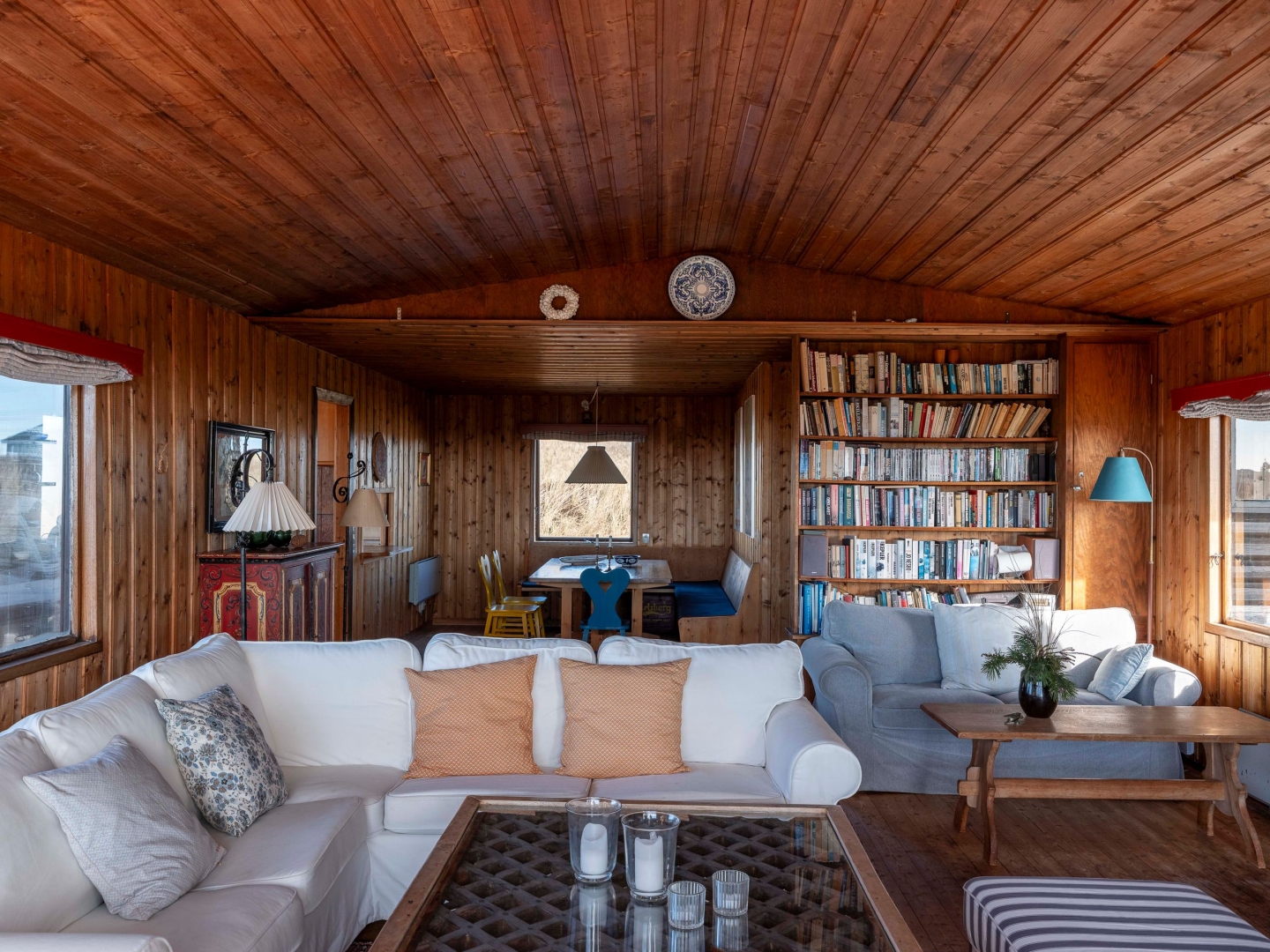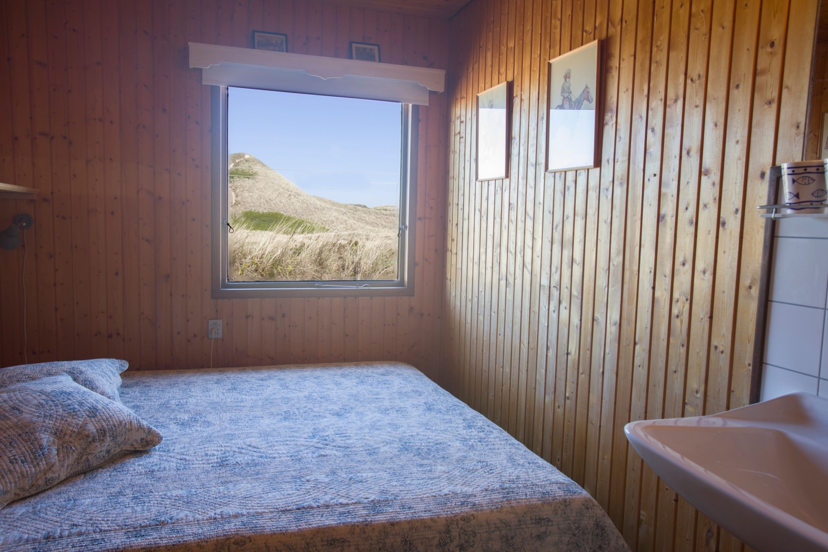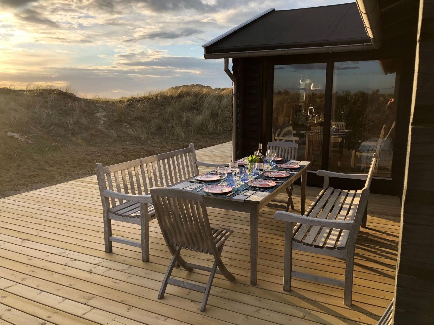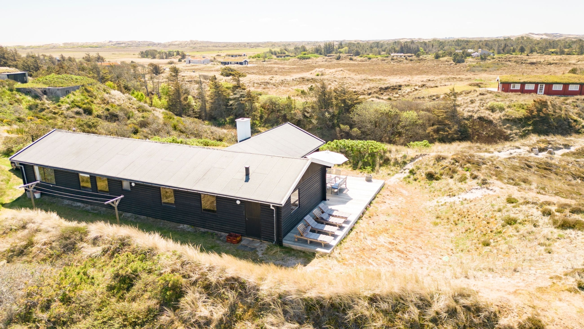 Sommerhuset er opført i træ og byder på 140 m² bolig med en gennemført sommerhusstemning. Den store, lyse opholdsstue har åben pejs og store vinduespartier, der lukker det storslåede lys og landskab ind. Mod vest har du frit udsyn til solnedgangen over havet, mens et stort panoramavindue mod syd giver dig et fantastisk kig ud over klitterne og milen. Køkkenet er hyggeligt og funktionelt med spiseplads og direkte udgang til en sydvestvendt træterrasse, hvor udsigten og solen kan nydes i fulde drag.