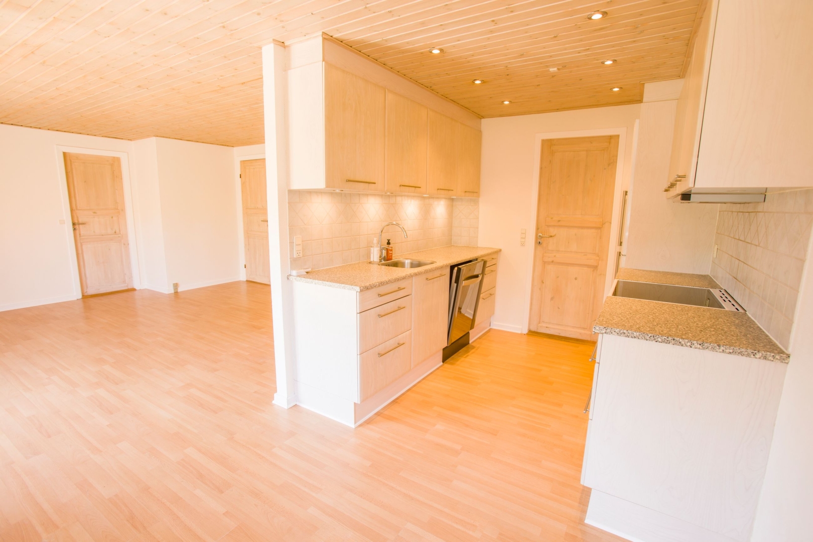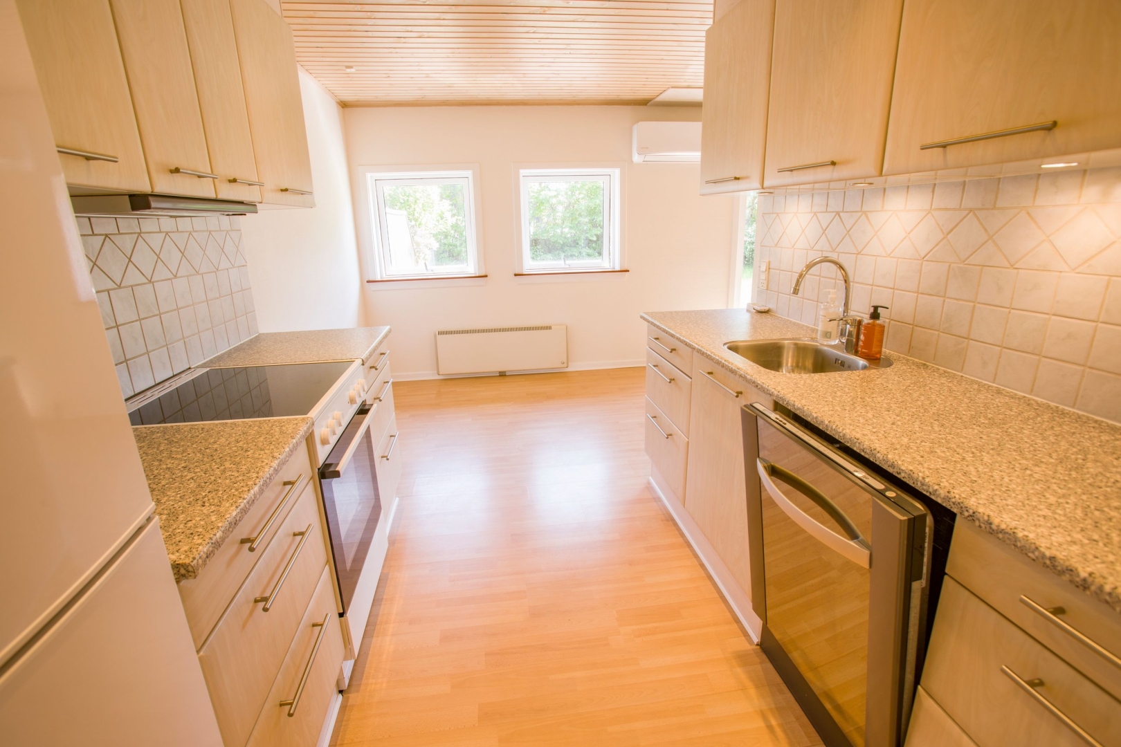 ·Pænt og funktionelt køkken med spots i loftet og spiseplads i åben forbindelse her er også installeret varmepumpe