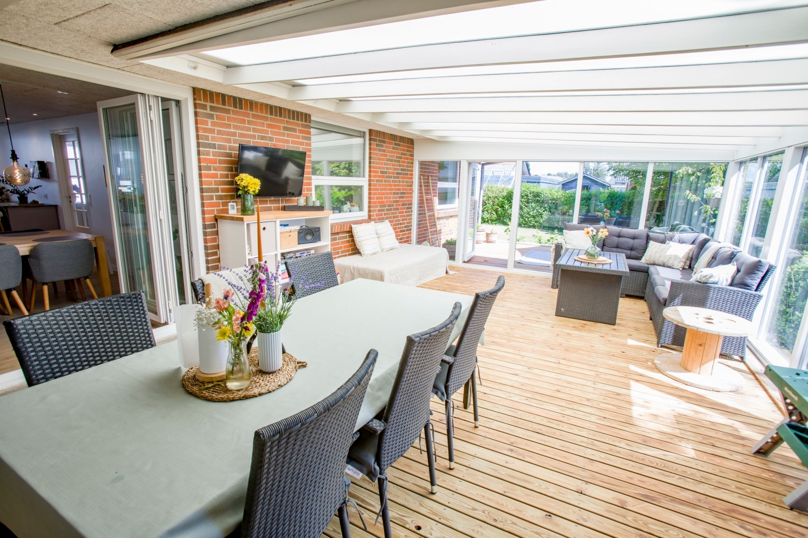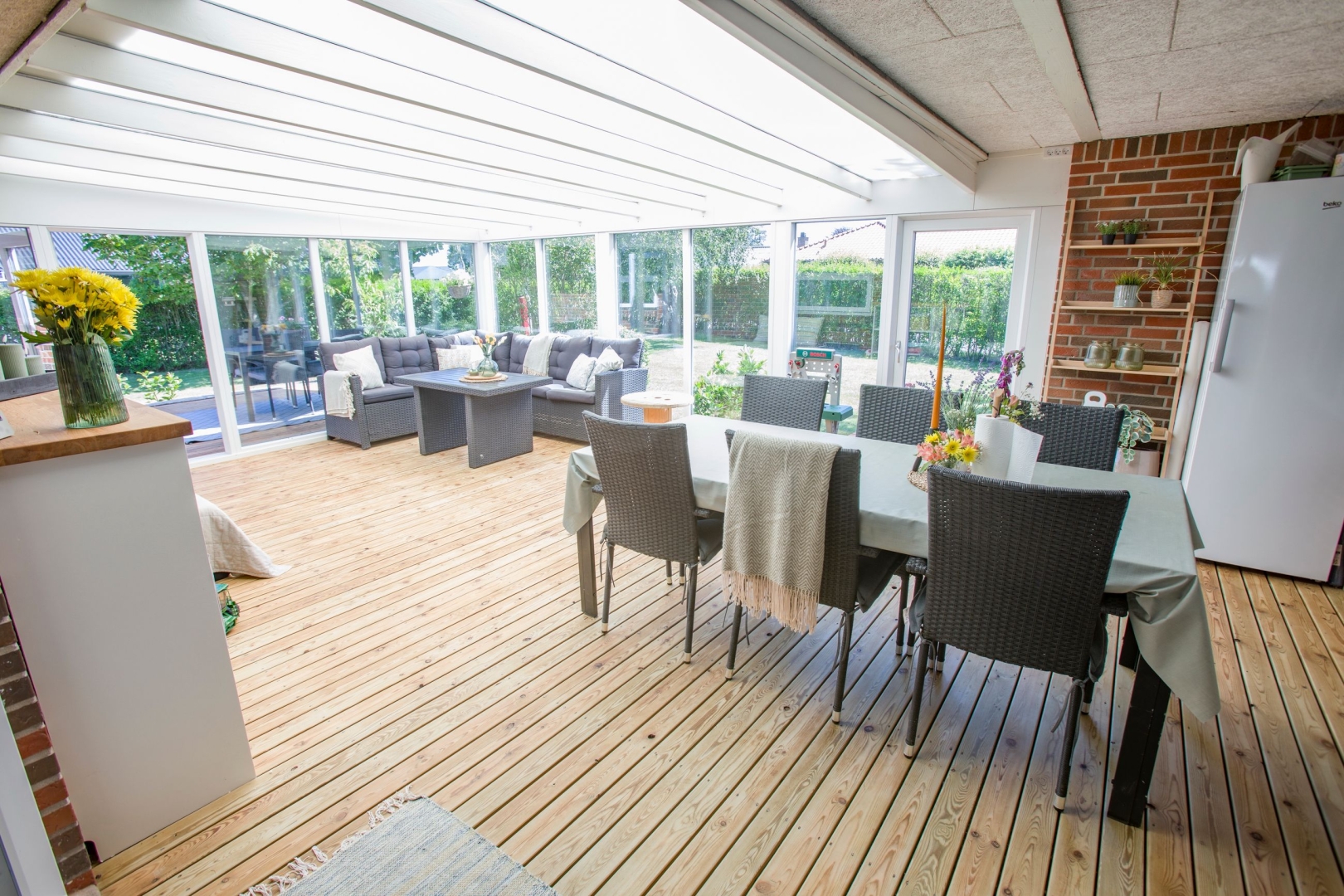 ·Overdækning mellem garage og hus samt udhus praktisk og læ - Østvendt træterrasse med adgang til udestue
