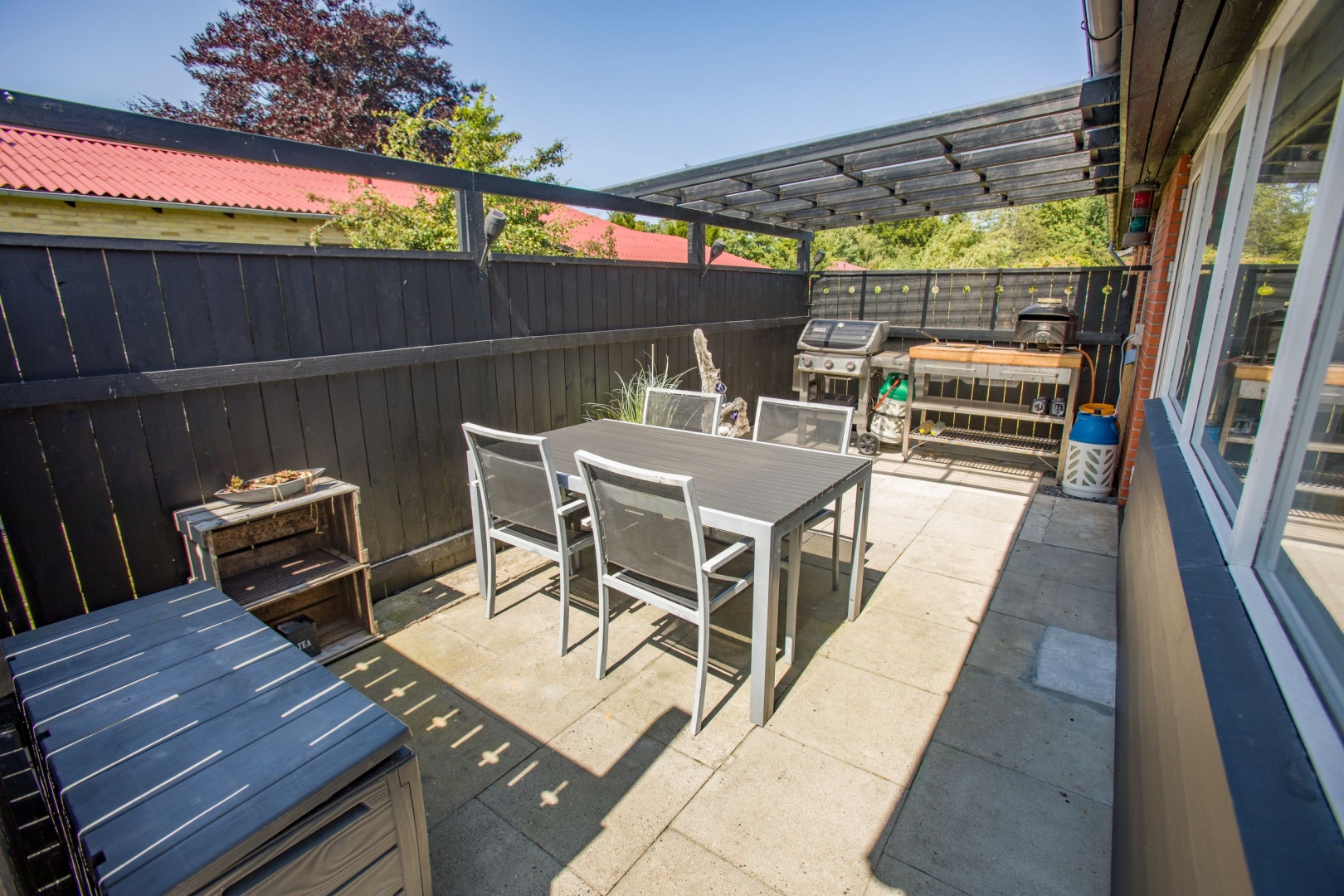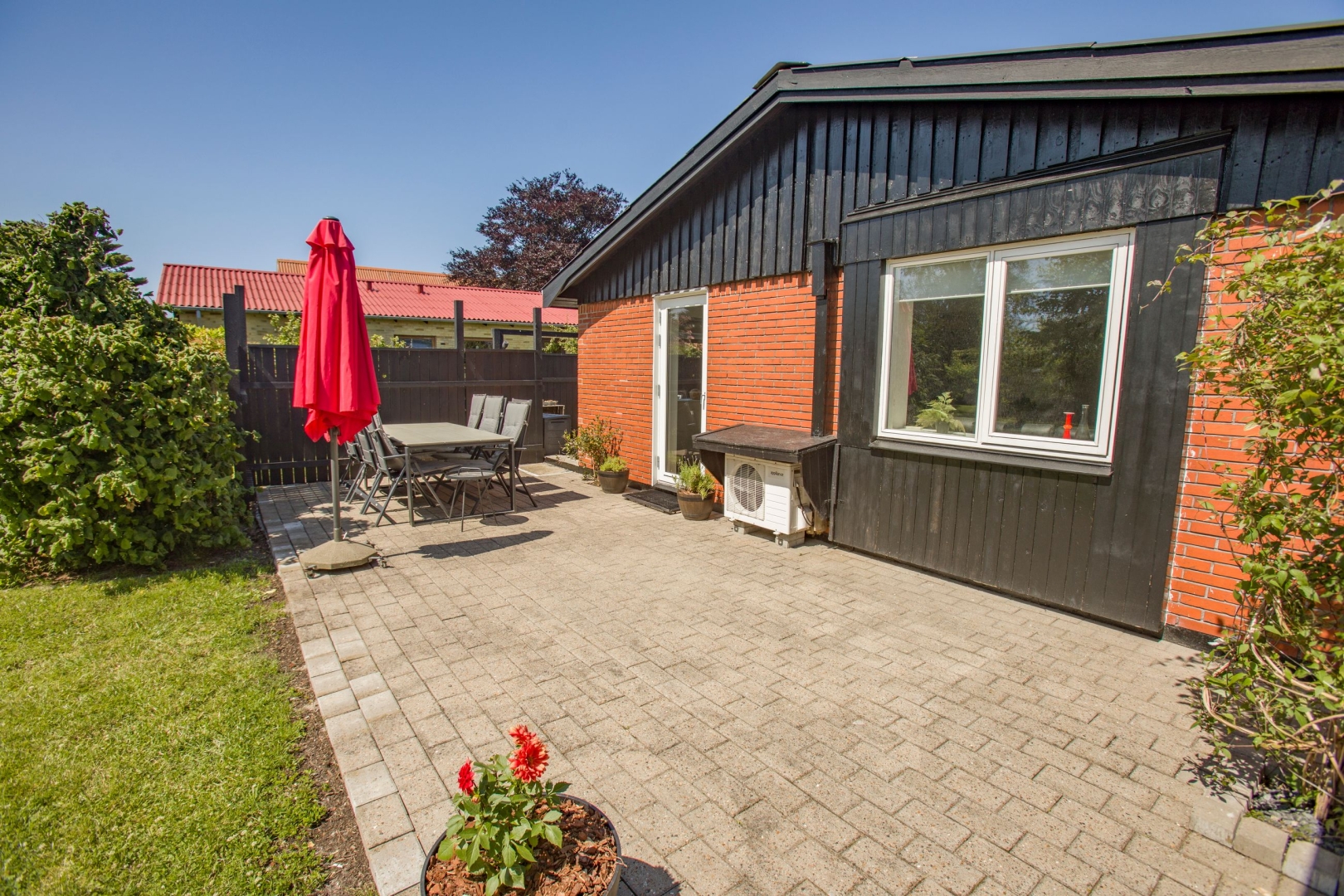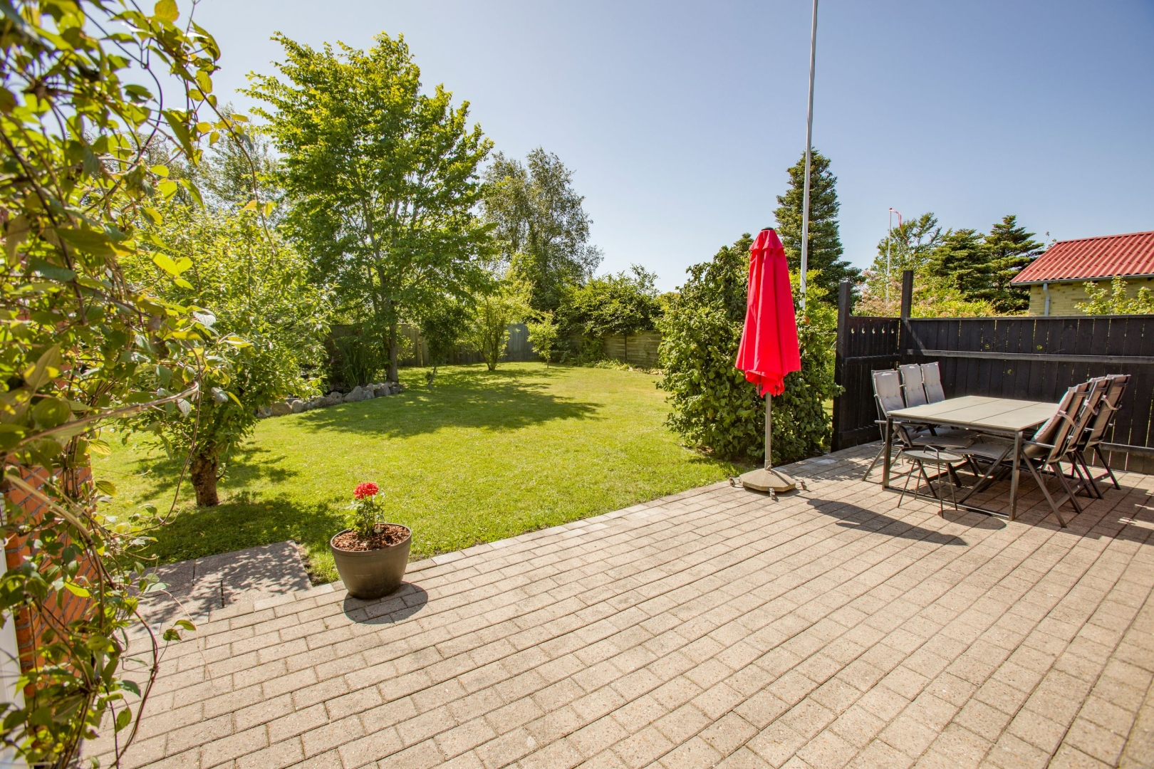 Haven vender mod syd og er helt lukket, ideel til både afslapning og børneleg. Her får du et hus med sjæl, opdateret med stor respekt for kvalitet og funktionalitet perfekt til dig, der ønsker at bo i rolige omgivelser tæt på skøn natur, men uden at gå på kompromis med det moderne liv.
