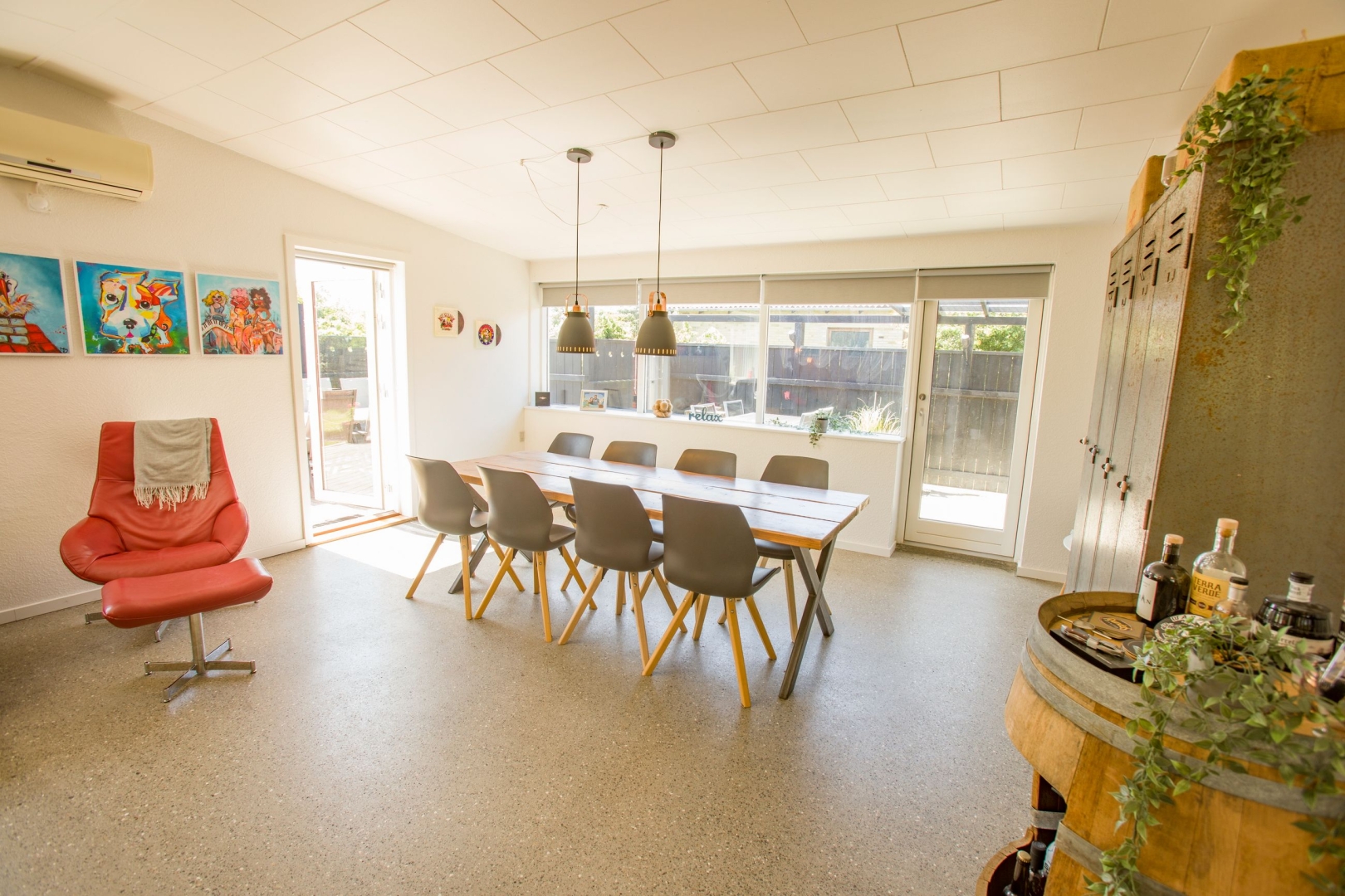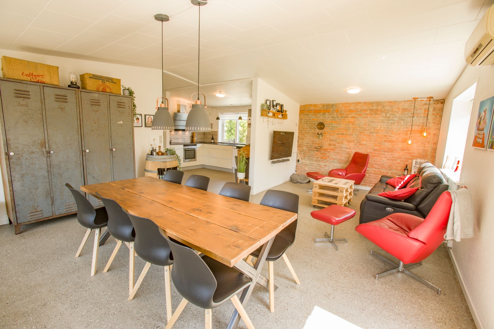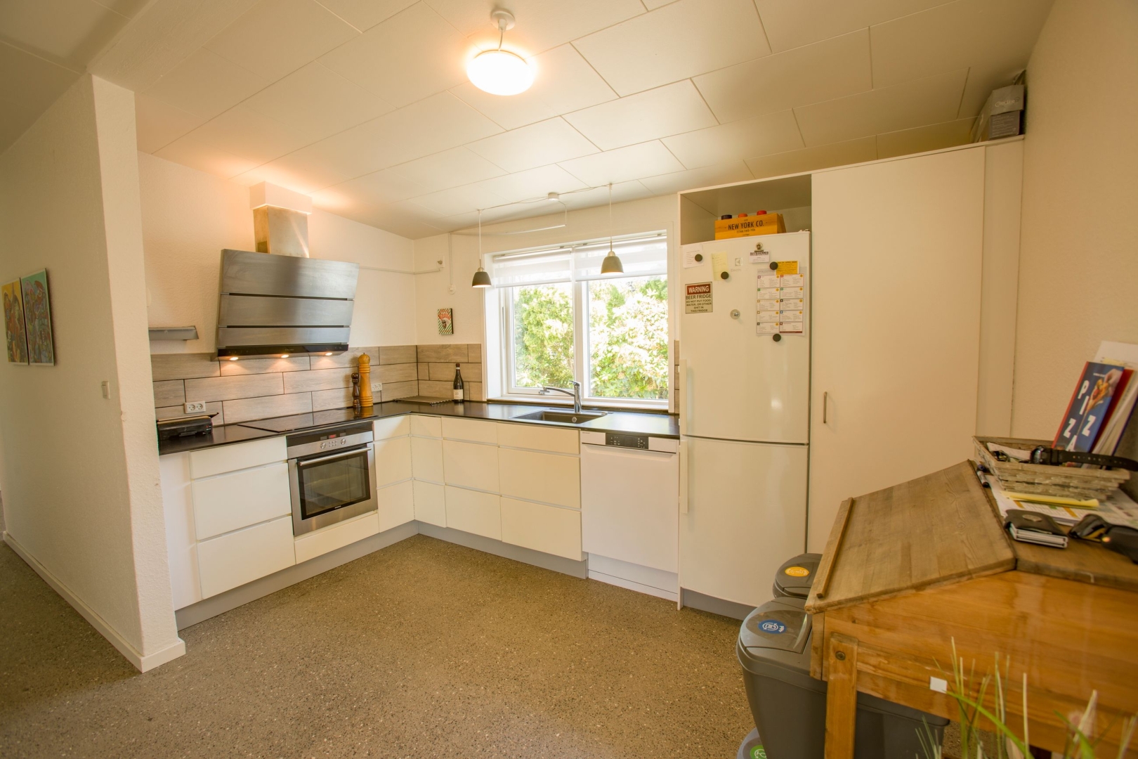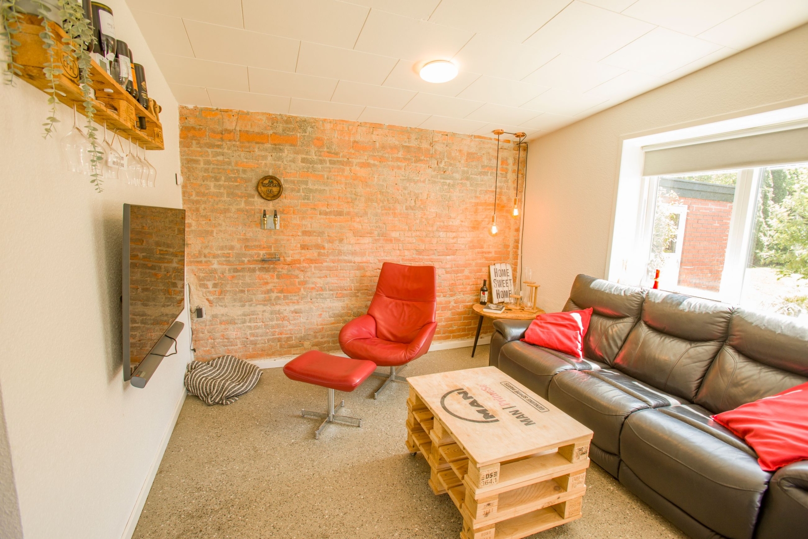 Stuen er boligens samlingspunkt med et indbygget fadølsanlæg på en karakterfuld New Yorker-væg og adgang til både en overdækket vestvendt terrasse samt en sydvendt terrasse, hvor du kan nyde solen og udsigten til den hyggelige, ugenerede have med anlagt dam.