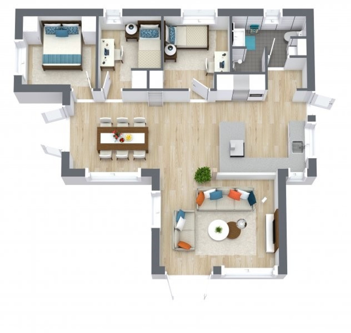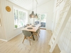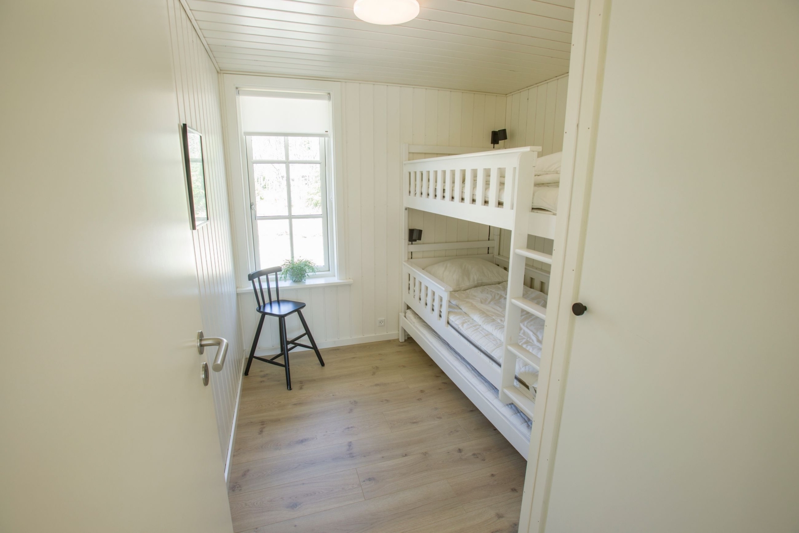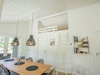 Indenfor mødes du af et lyst og indbydende miljø med loft til kip i store dele af huset, hvilket skaber en rummelig og luftig atmosfære. Du træder ind i entréen, som åbner op mod det stilrene køkken, hvor der også er god garderobeplads og en effektiv varmepumpe. Huset byder på tre soveværelser ét med dobbeltseng og skabe, ét med køjeseng og skab samt et ekstra værelse med elevationssenge og skab. Badeværelset er flot og moderne med bruseniche og spots i loftet, og over spiseområdet findes en hyggelig hems med to madrasser perfekt til børn eller overnattende gæster.