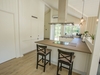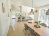 Køkkenet, spisepladsen og stuen er integreret i et samlet opholdsrum, som indbyder til både fællesmadlavning, måltider og afslapning foran fjernsynet. Fra spiseområdet er der udgang til en vestvendt overdækket terrasse, hvor aftensolen kan nydes i ro og mag, mens stuen har direkte udgang til en solrig og ugeneret sydvendt terrasse. Der er anlagt træterrasse, så udelivet virkelig kan nydes fra morgen til aften.