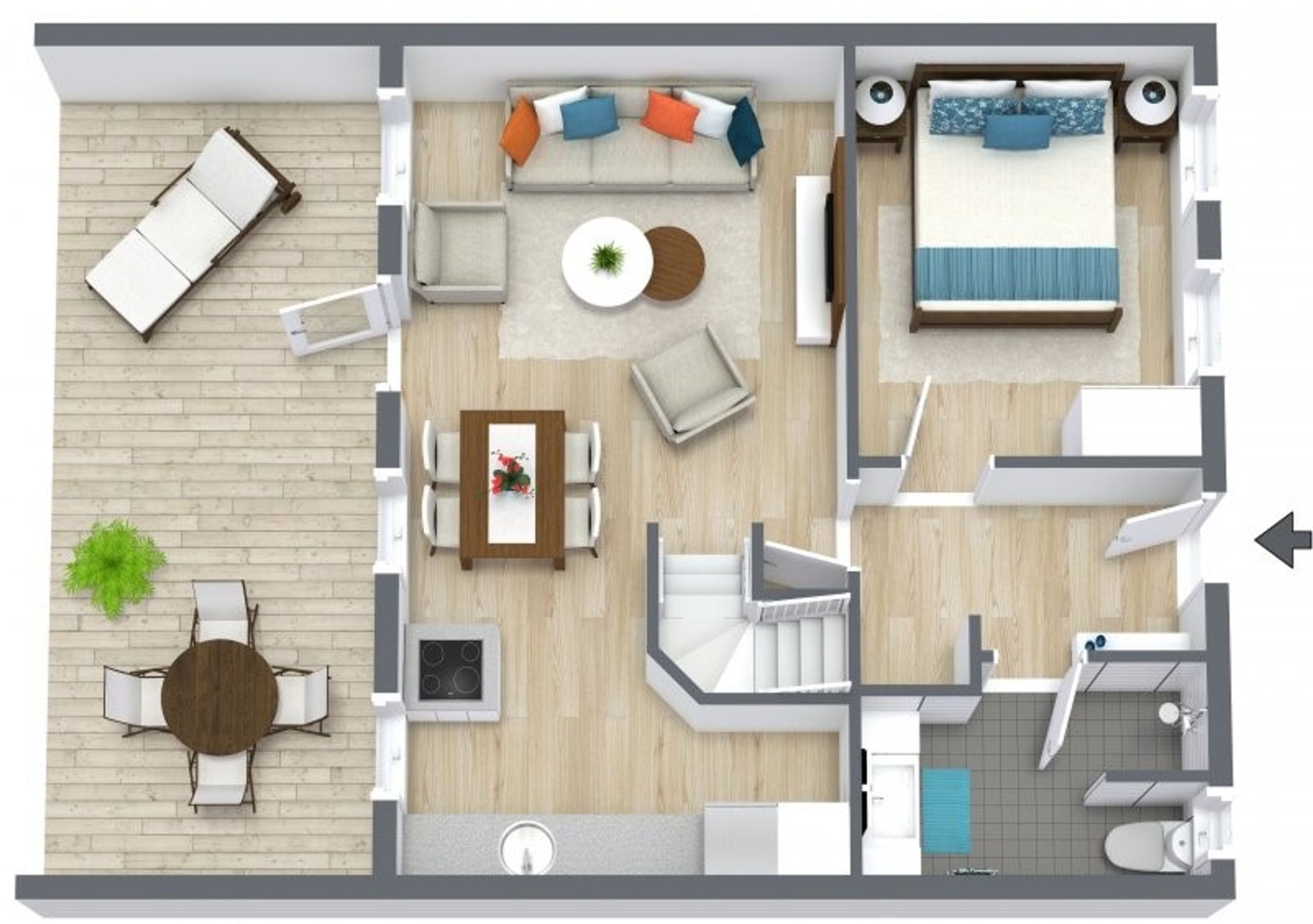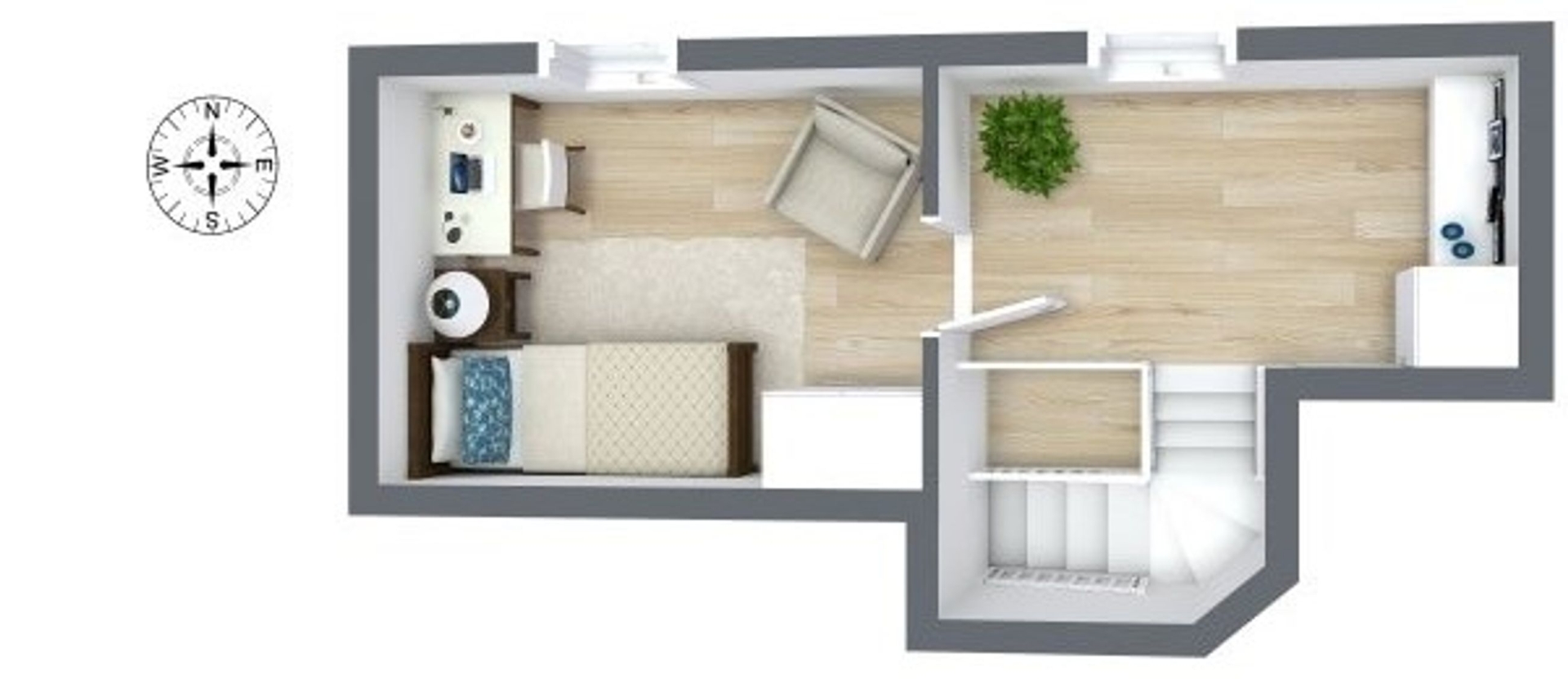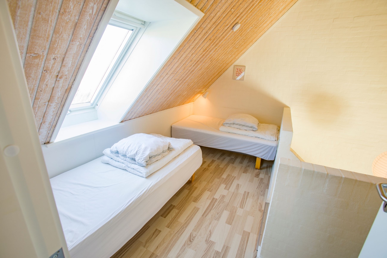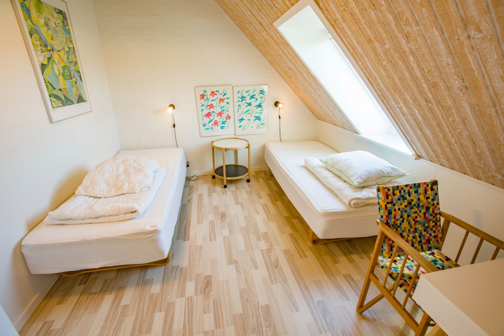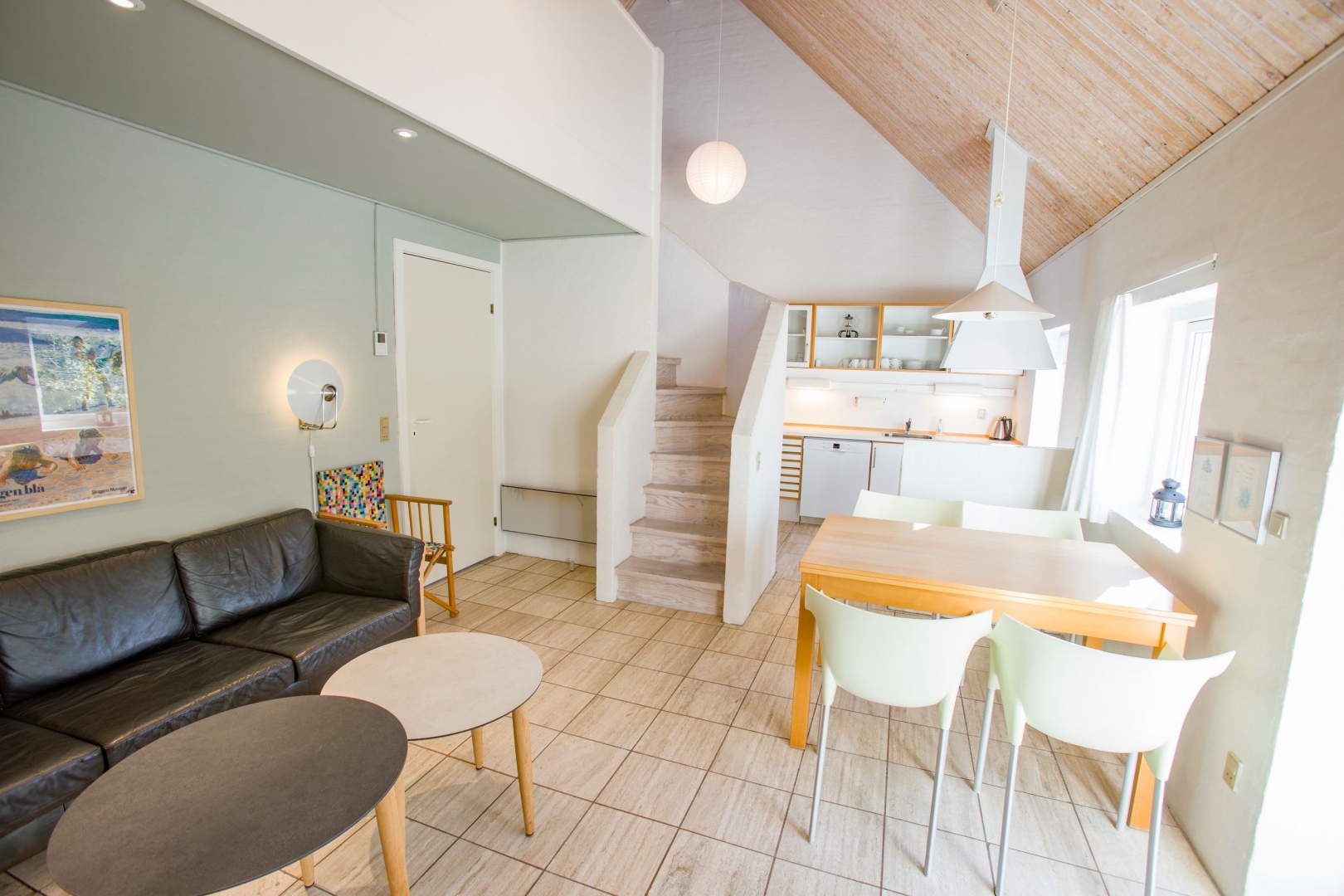 På førstesalen finder du et åbent repos med ekstra sovepladser samt et værelse herfra er der et fint kig ned over stuen, hvilket giver en dejlig rumfornemmelse. Lejligheden er løbende moderniseret og fremstår velholdt med en stilfuld og funktionel indretning.
