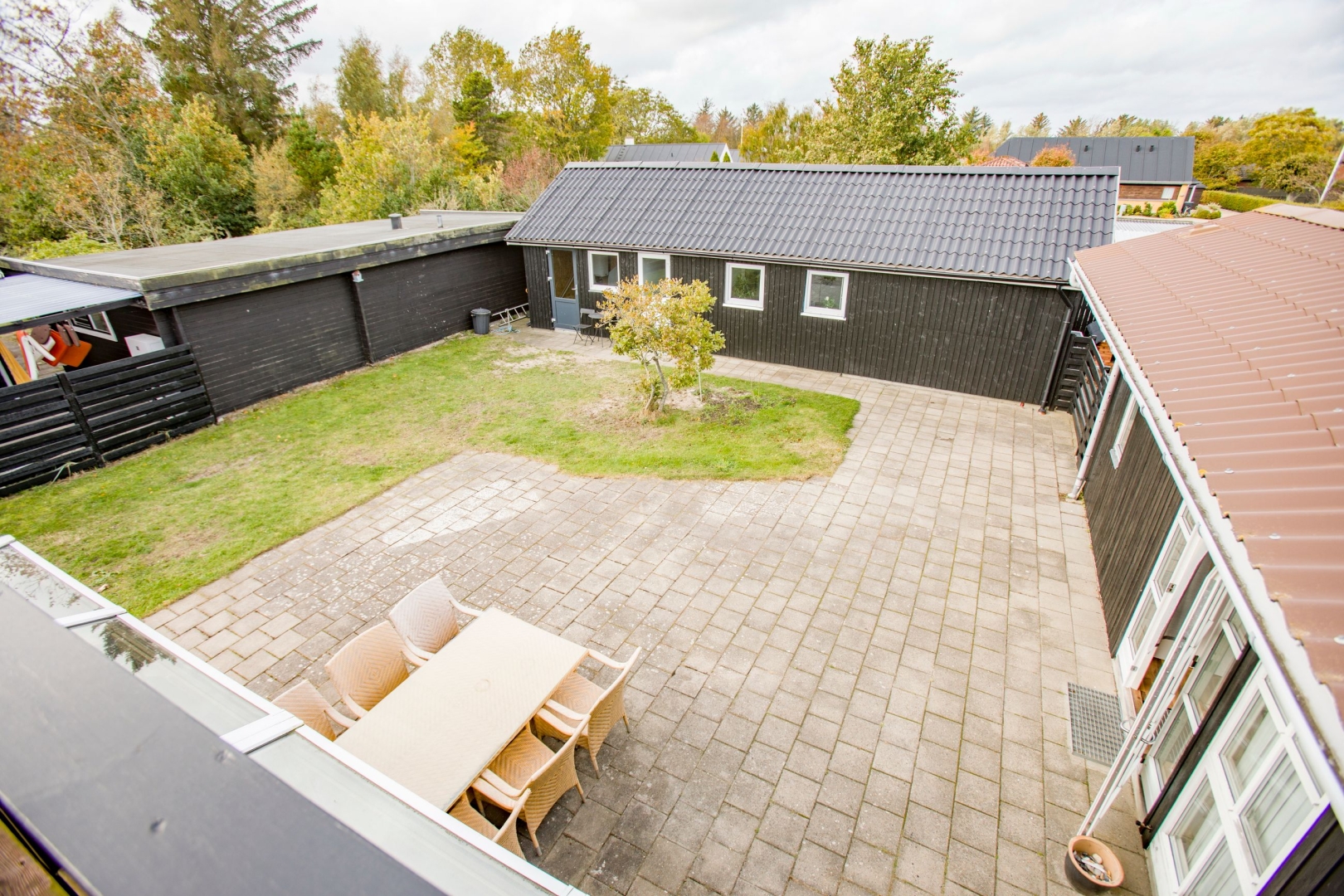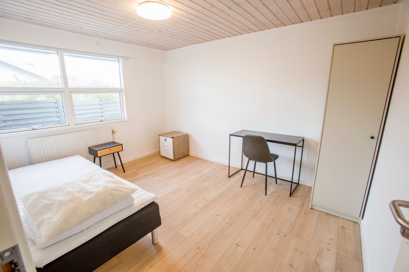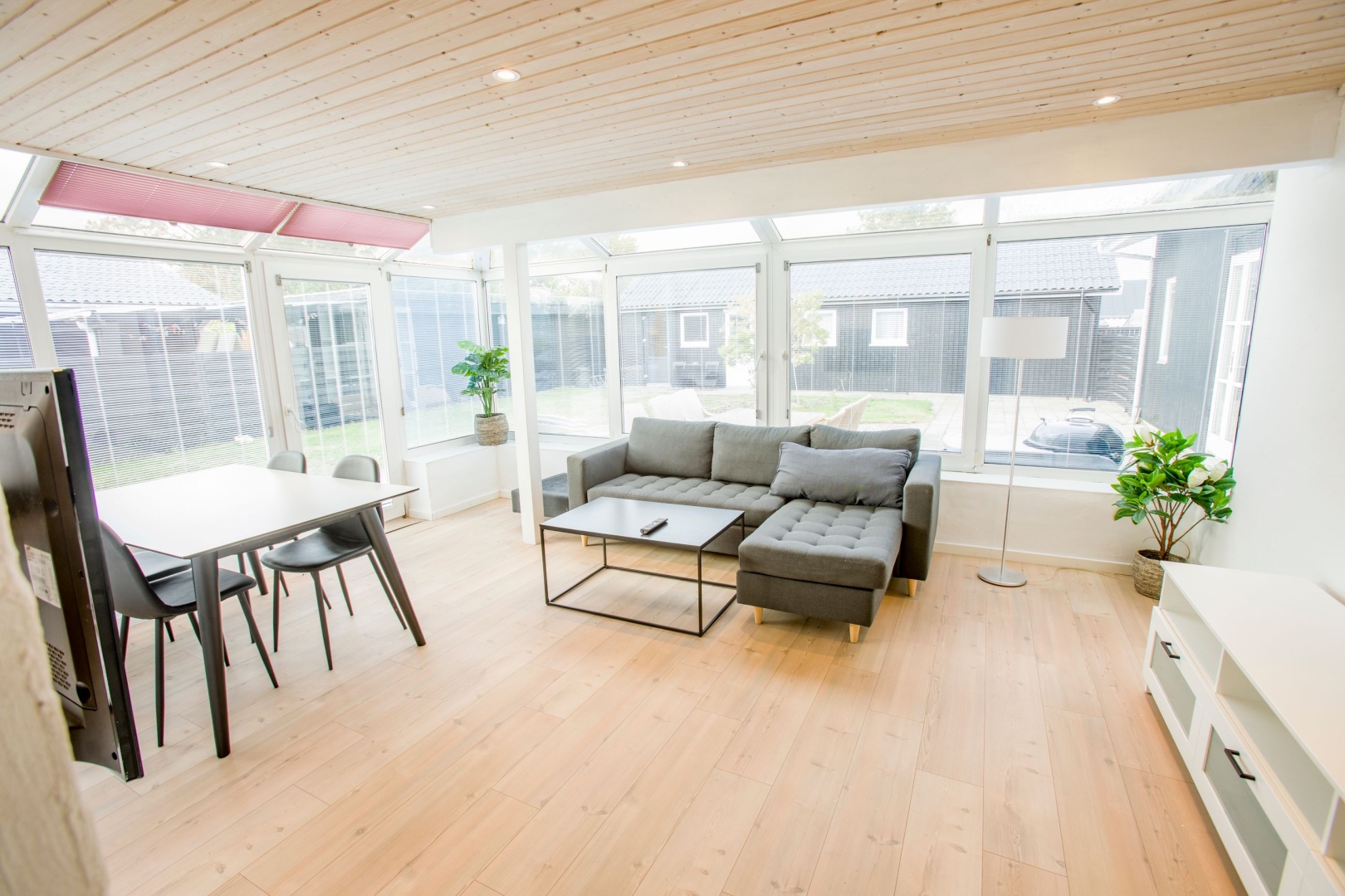 Hovedhuset byder på hele 161 m², hvor man straks fornemmer den lyse og venlige atmosfære. Her findes en indbydende entré, moderne badeværelse med bruseniche, værelse og et soveværelse med direkte adgang til terrasse. Det flotte køkken danner boligens naturlige samlingspunkt med udgang til en sydvestvendt udestue i glas, hvor man kan nyde det smukke lys samt udgang til gårdhaven. Et praktisk bryggers med vaskefaciliteter, yderligere et soveværelse med skabe. På førstesalen finder man et lyst køkkenalrum og stue i ét, to fine værelser, badeværelse samt et praktisk depotrum.