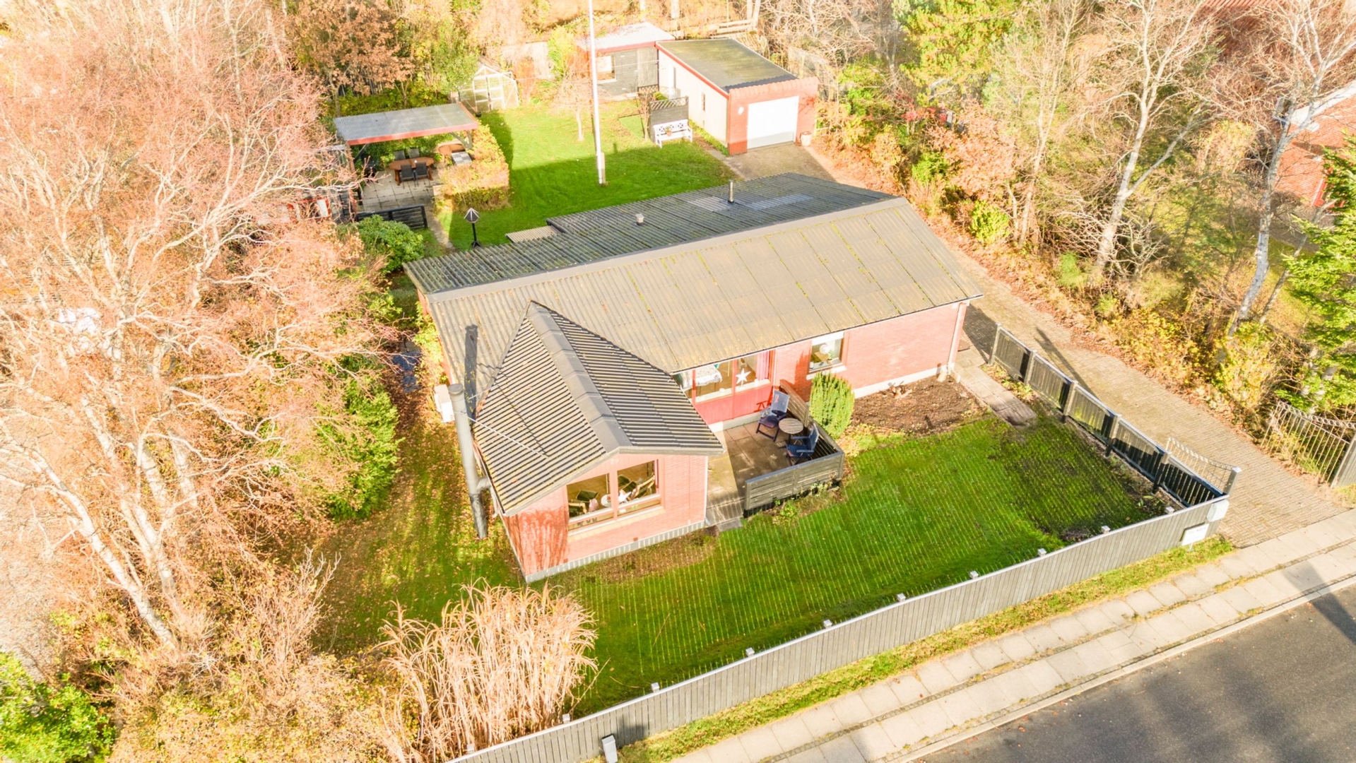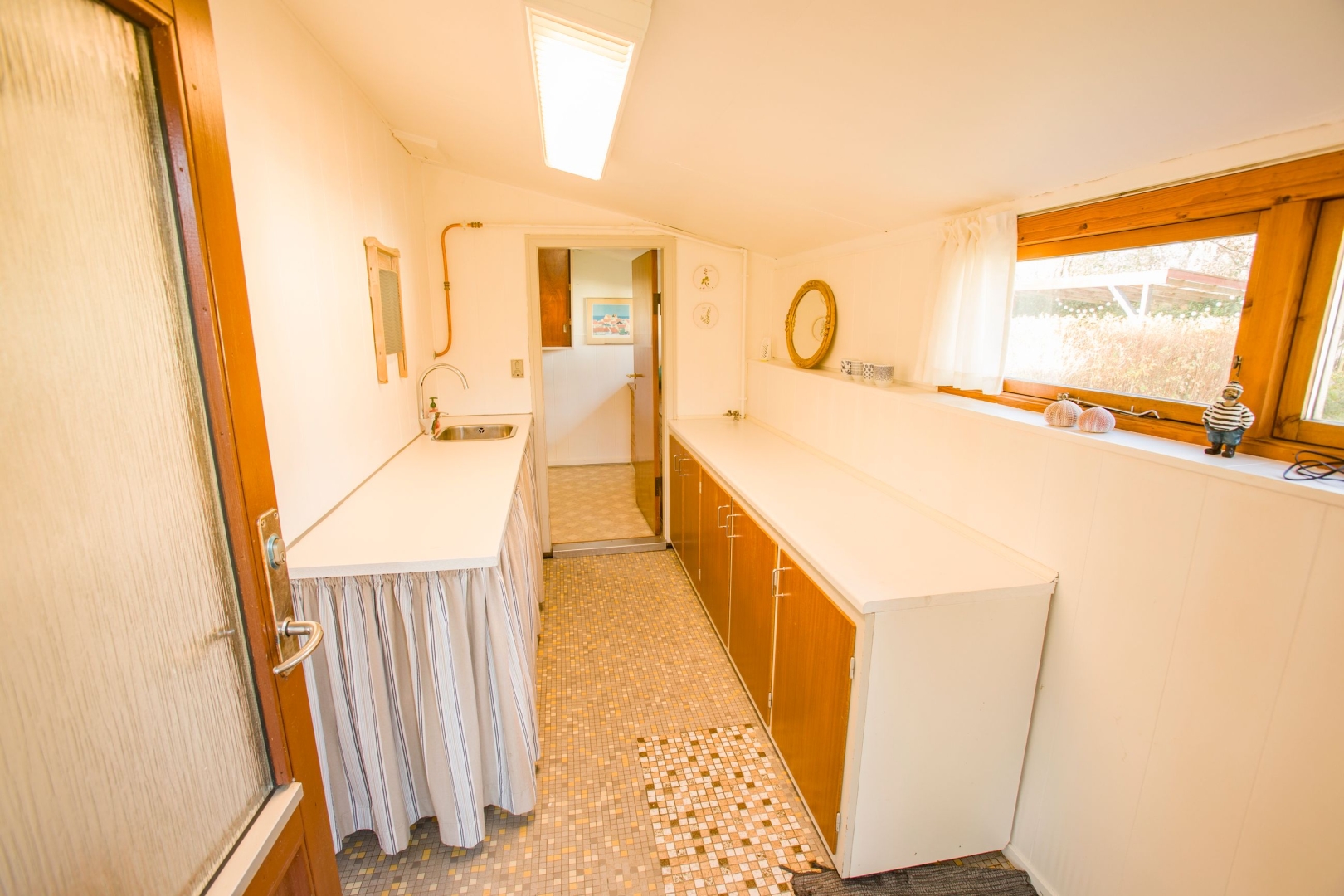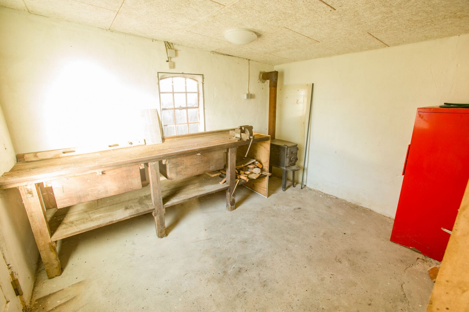 Ejendommen byder desuden på en garage på 28 m² med el-hejs, et udhus fra 2002 på 17 m² med brændeovn, et drivhus på 10 m² samt en overdækket terrasse fra 2018 på 18 m². Haven er lukket og ugeneret med frugttræer, bærbuske og flere solrige kroge, hvor du kan nyde sommerdagene i rolige omgivelser.