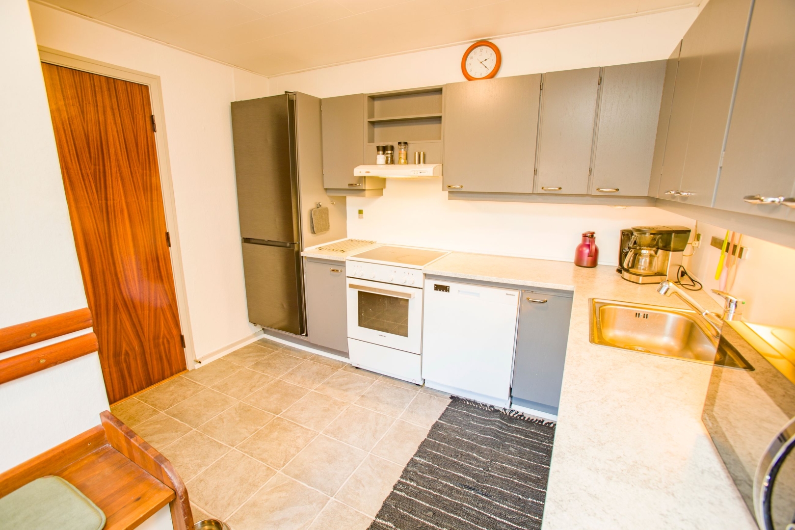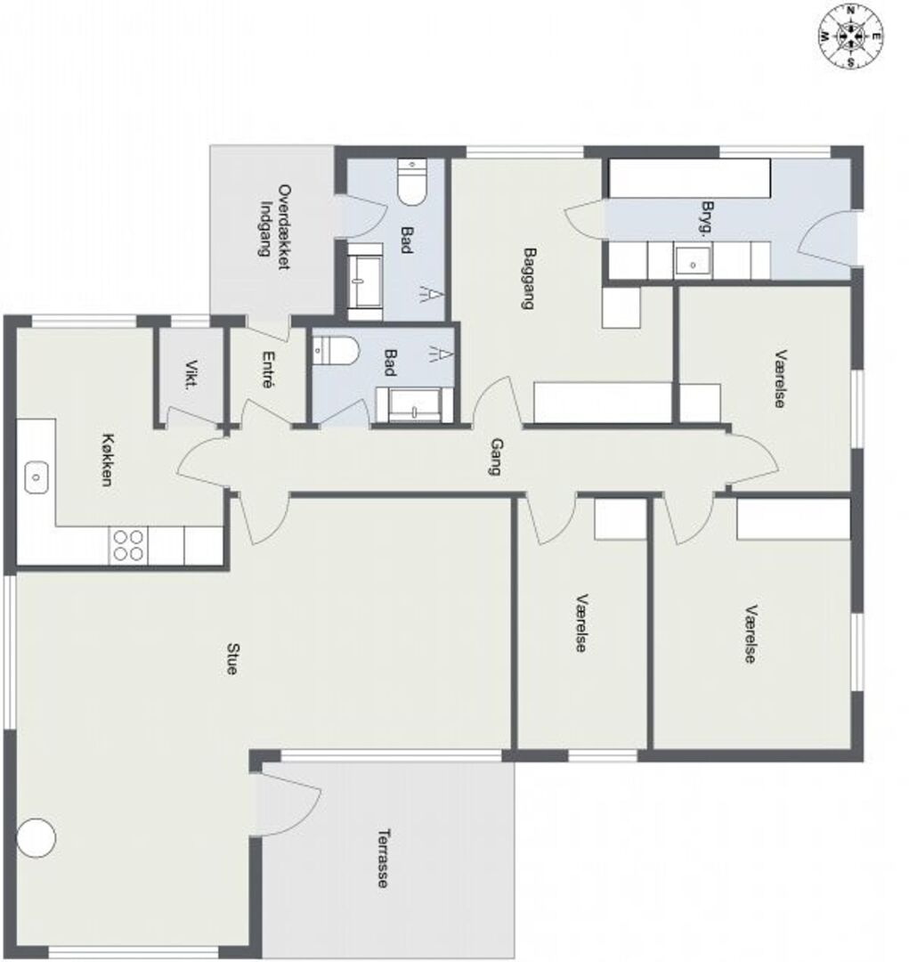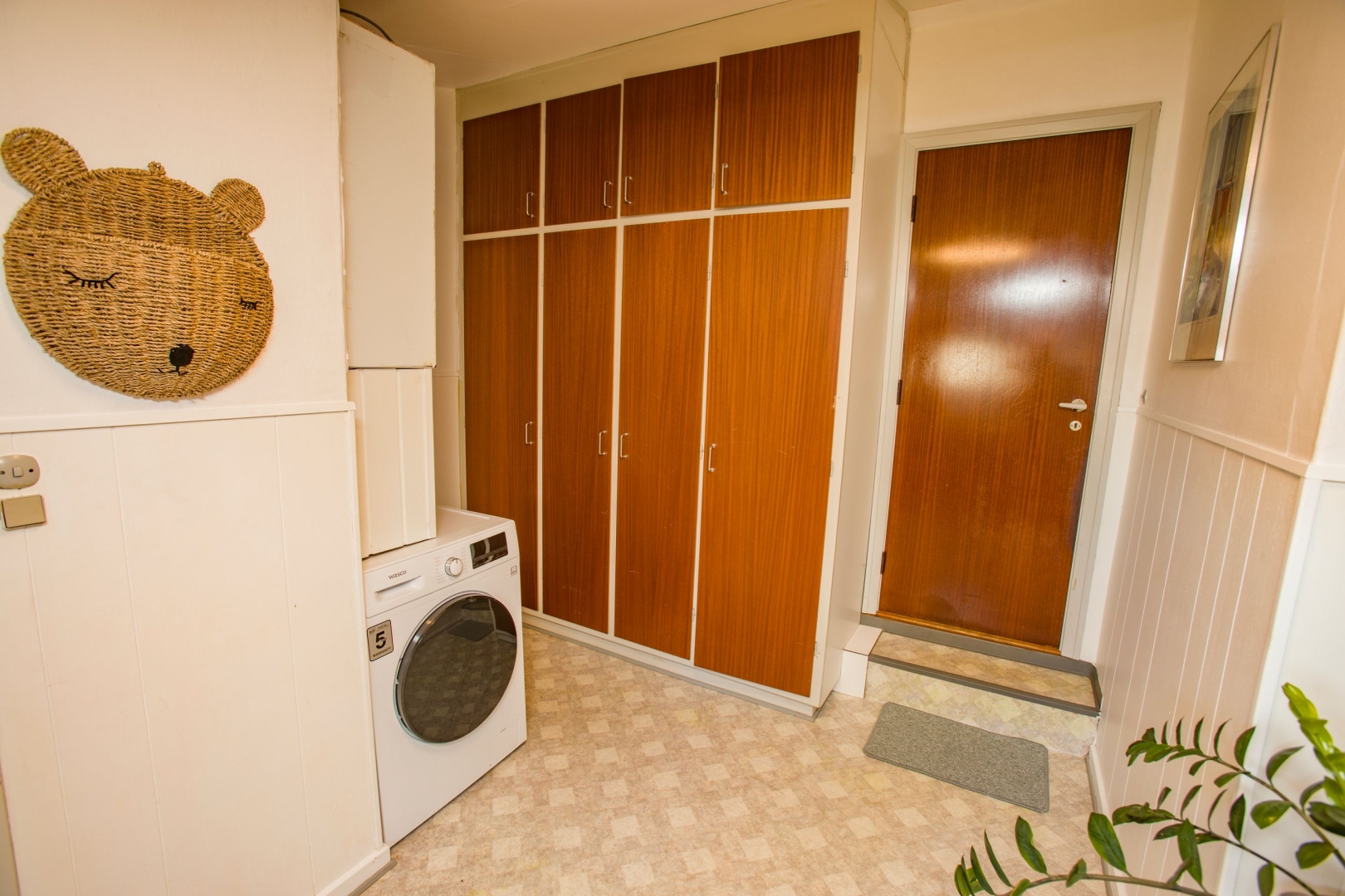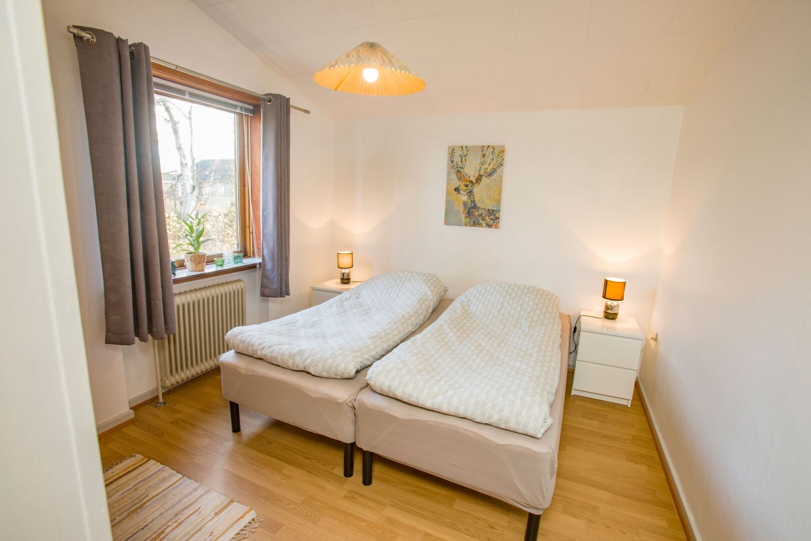 Boligen rummer 126 m² og byder på en praktisk og veldisponeret indretning. Fra baggangen med bord og vask er der adgang til et bryggers og fyrrum med nyt naturgasfyr, vaskemaskine og god skabsplads. Huset har tre rummelige værelser med faste skabe, et badeværelse med gulvvarme, klinker og et pænt arrangement med vask og toilet. Køkkenet er lyst og indbydende med spiseplads og et praktisk viktualierum, og i forlængelse heraf ligger den store, lyse stue med spiseafdeling, brændeovn, varmepumpe og udgang til den sydvendte terrasse.