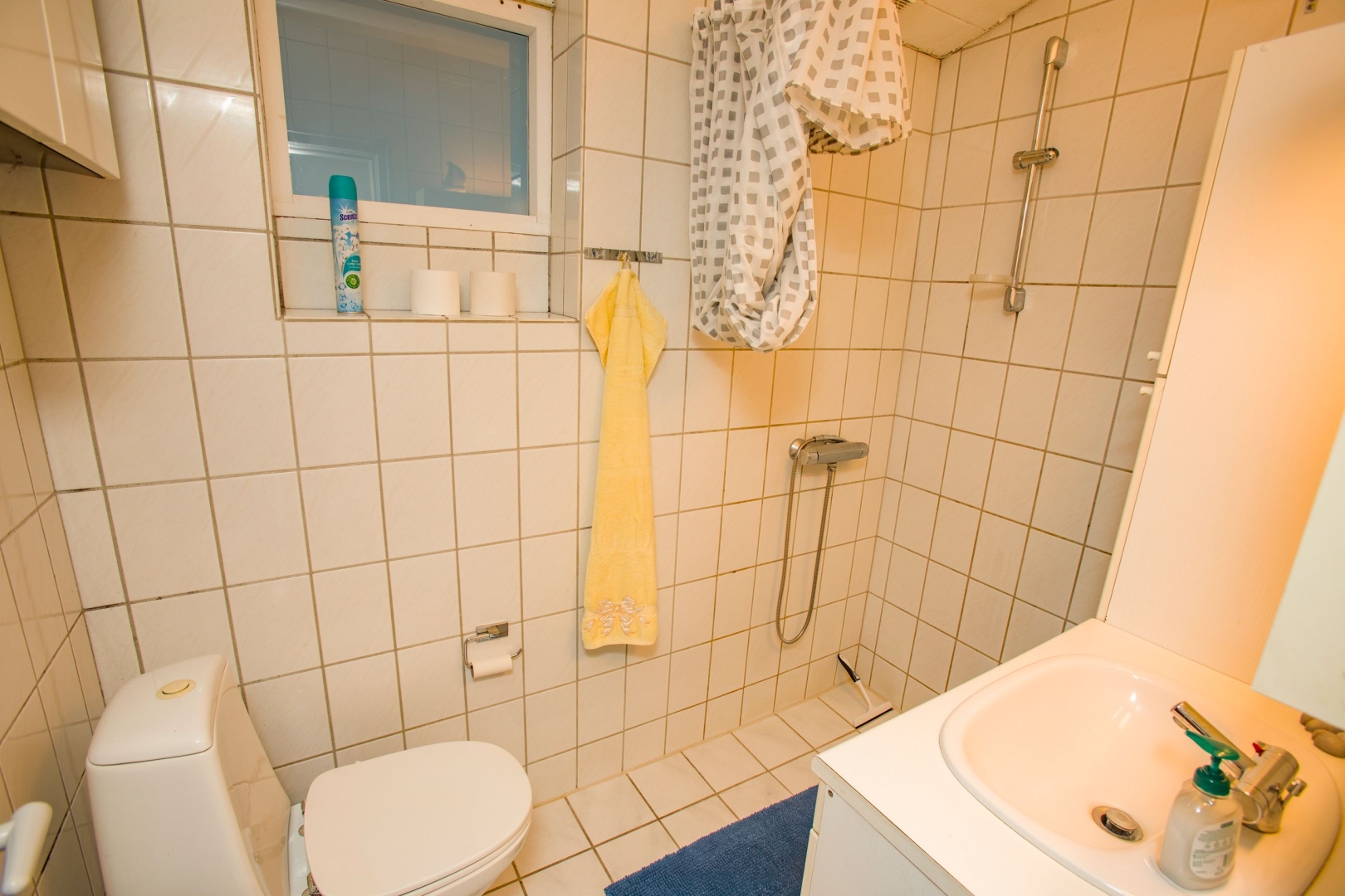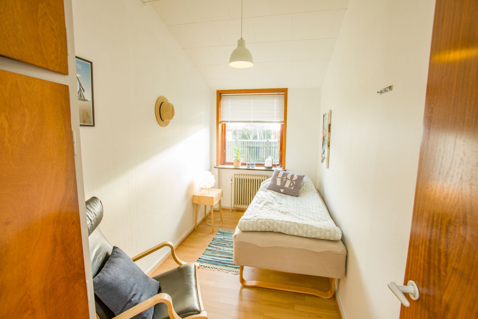 Fra entreen er der adgang til et ekstra badeværelse med elgulvvarme perfekt til gæster eller som praktisk løsning efter en tur i haven. I baghaven ligger et hyggeligt anneks på 12 m² med klinkegulv og lille varmepumpe, som gør det ideelt som gæstehus, kontor eller hobbyrum.