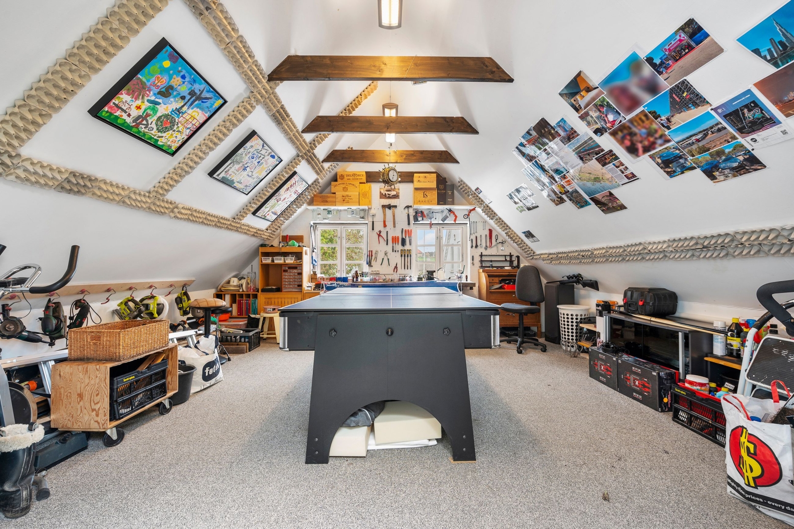 Ejendommen rummer i alt 347 m² bolig og 73 m² erhverv, hvortil der hører en dobbeltmuret garage med to aluporte, elektrisk port i indkørsel og et godt aktivitetsrum eller gildesal ovenpå. Havearbejdet skal I ikke bekymre jer om, idet udenomsarealerne er anlagt med støbte betonfelter smukt adskilt af jerntræ, hvilket giver et stilrent og vedligeholdelsesvenligt udtryk.