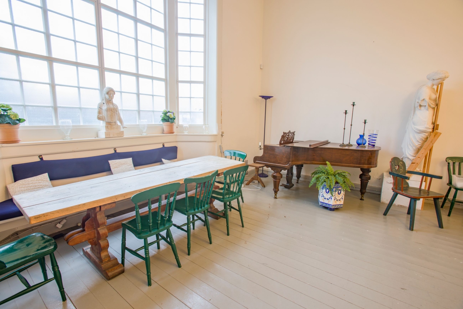 Det storslåede atelier fuldender villaens karakter. Et rum hvor Tuxen skabte nogle af sine store værker, og hvor lyset strømmer ind. Loftshøjde, proportioner og atmosfære gør atelieret til et kunstværk i sig selv. Her holdt Drachmann sin berømte tale til Skagensfiskerne i 1906, og her satte kostumeballer, fester og musisk samvær gennem slægtled deres aftryk. Historien er bevaret og lever.