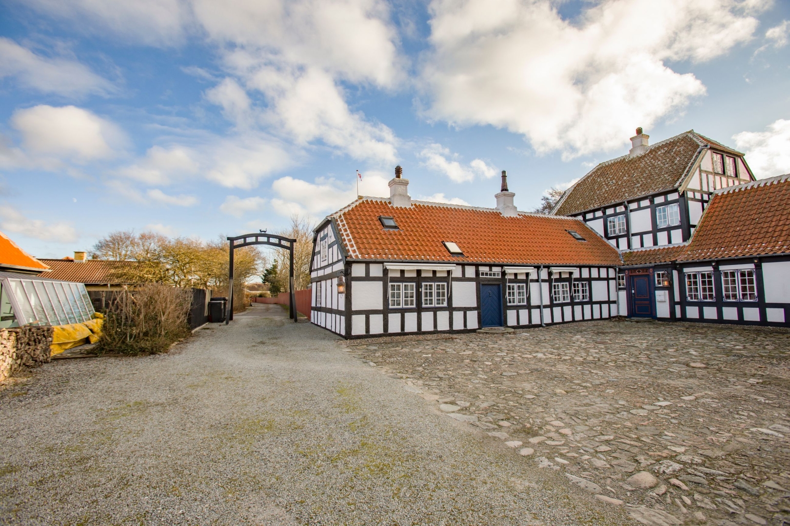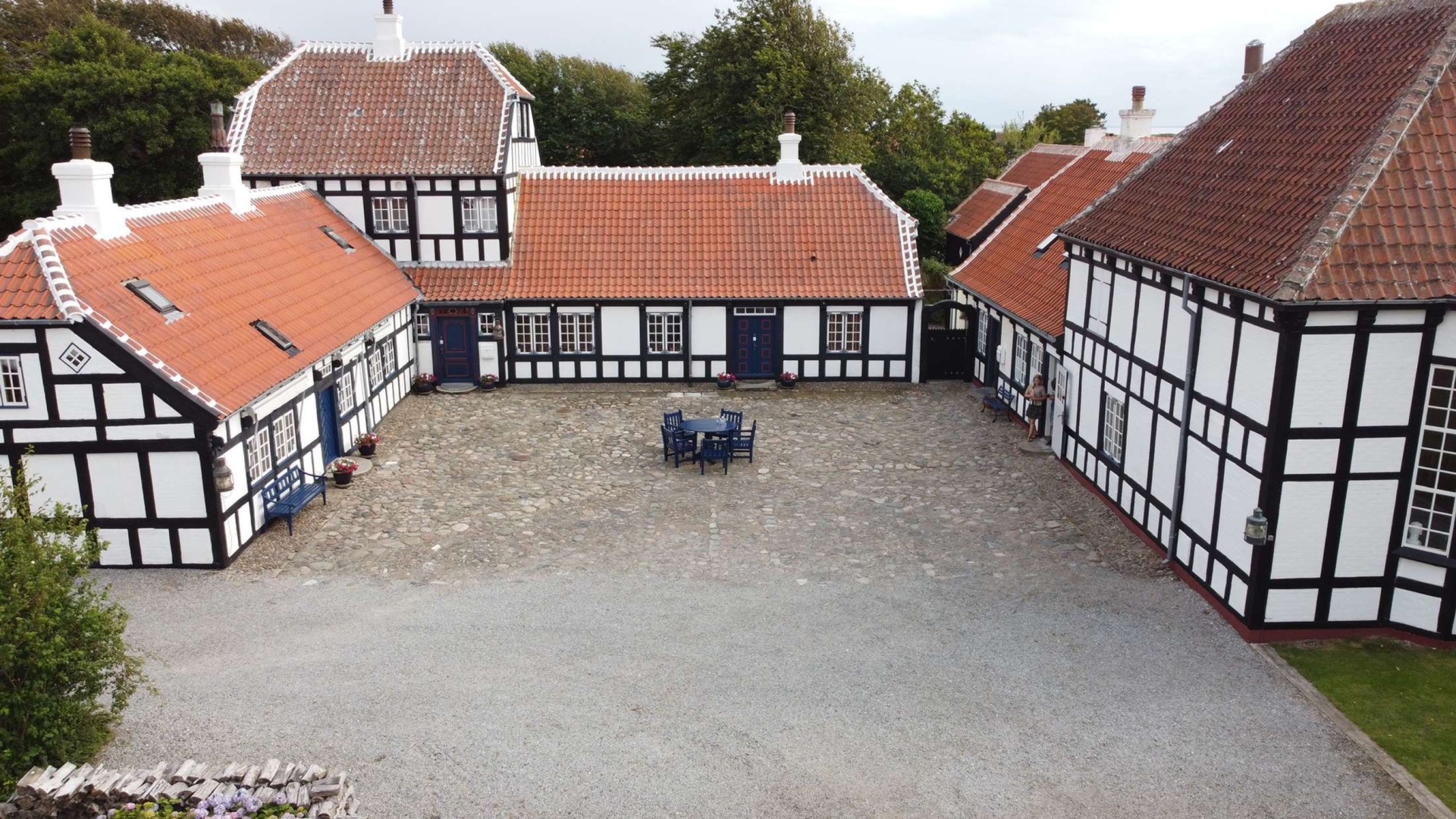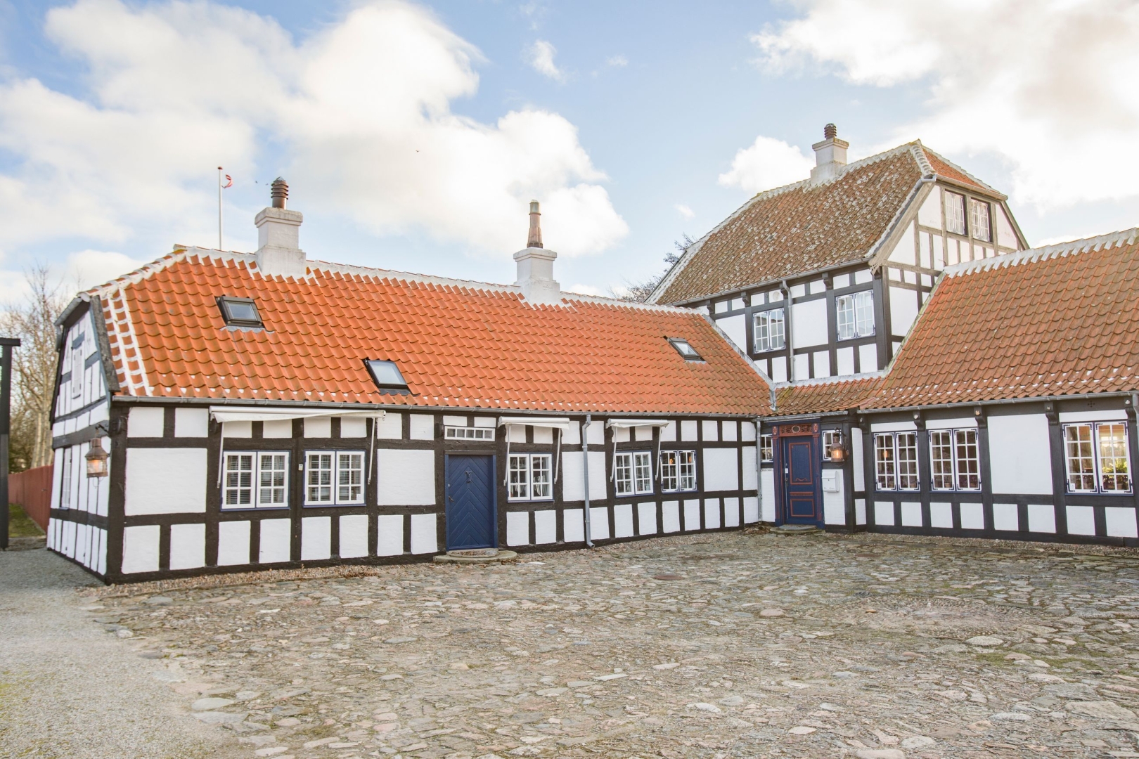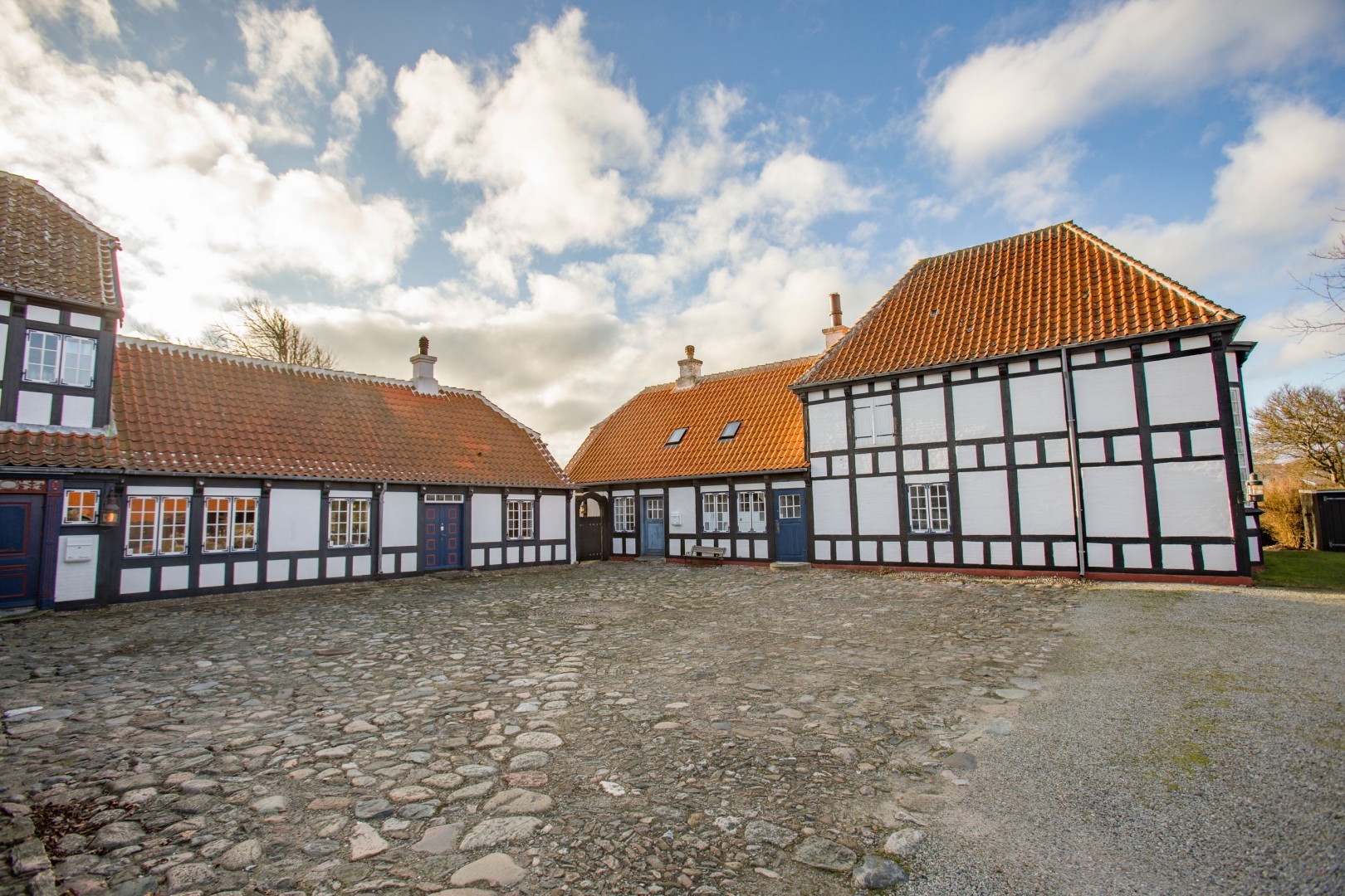 Den oprindelige gård blev opført i årene 18331842 af møllebygger Søren Pedersen og fremstår i dag som et helstøbt og harmonisk anlæg i klassisk bindingsværk med røde tegl, sprossevinduer og tre adskilte længer.
