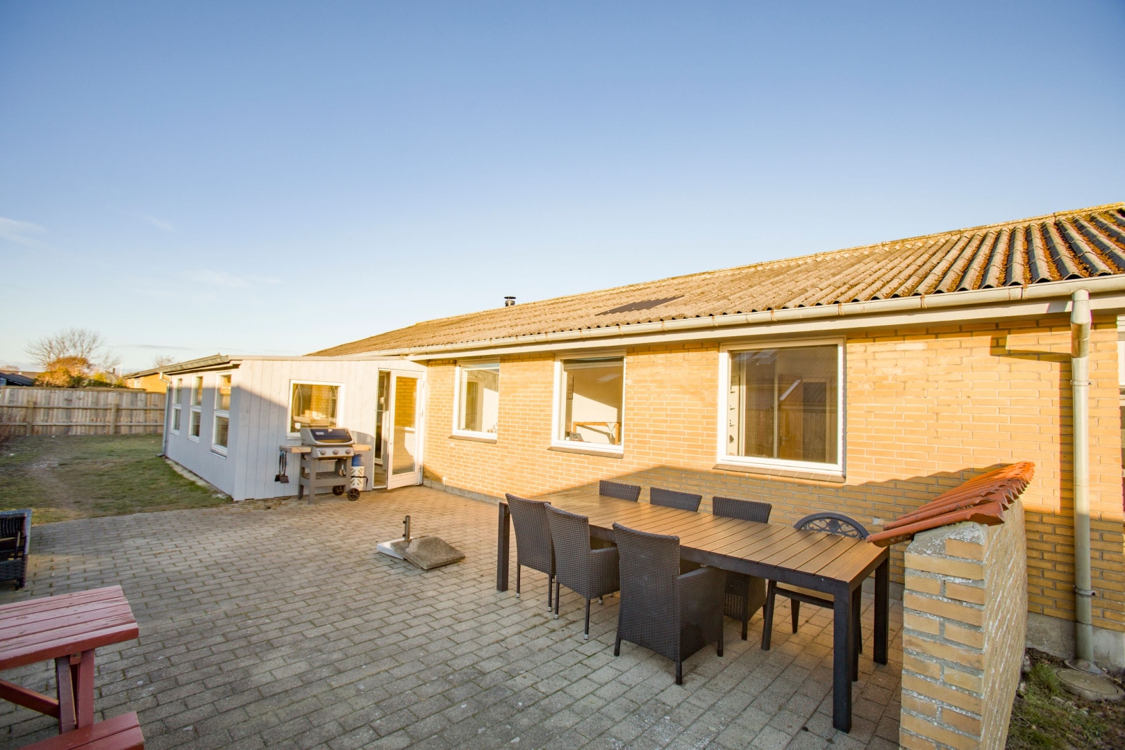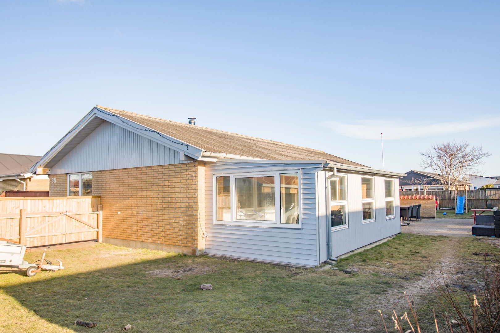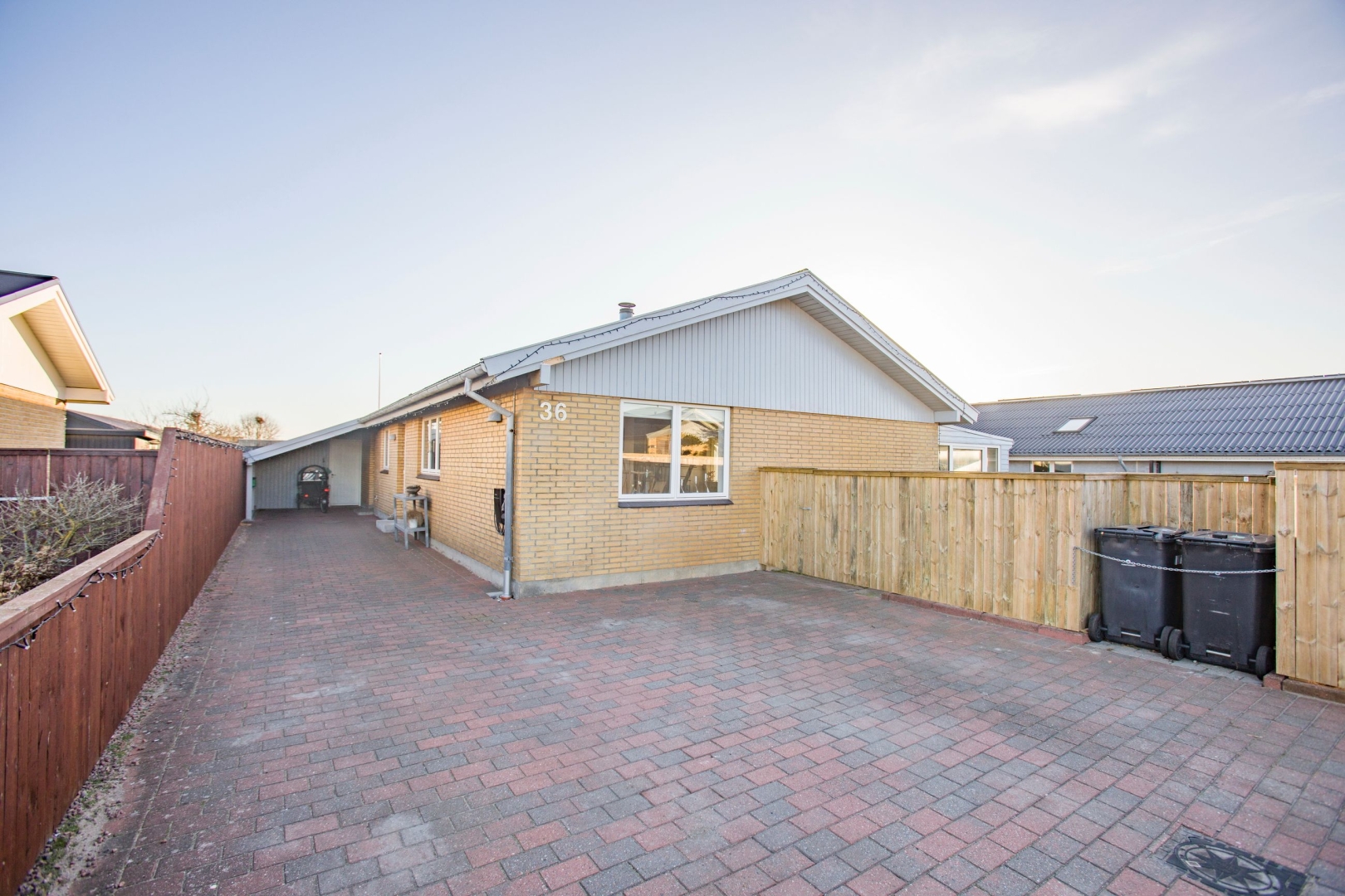 Vinduerne i boligen er fra 2016, hvilket bidrager til både komfort og et godt lysindfald. Udendørs er haven primært anlagt i græs med fliseareal i indkørsel og ved den sydvendte terrasse, hvor solen kan nydes det meste af dagen. Her er også legetårn til familiens yngste. Indkørslen er forberedt med træk til ladestander, og carporten fungerer samtidig som overdækket indgang. De tilhørende udhuse giver gode anvendelsesmuligheder med isolering i loftet i det ene samt endnu et isoleret udhus i forlængelse, foruden et praktisk brændeskur.